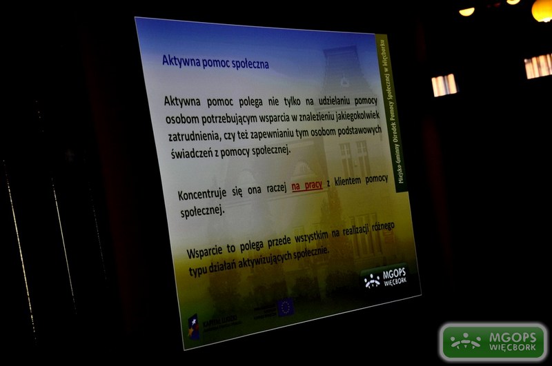 Uzyskanie dofinansowania bezpośrednio przyczyniło się do możliwości zatrudnienia dodatkowego pracownika socjalnego, dzięki czemu MGOPS w Więcborku wypełnia ustawowe kryterium „2000 mieszkańców/1 pracownik socjalny”. Pozyskane środki pozwoliły także na zakup dodatkowego sprzętu biurowego i wyposażenia meblowego.