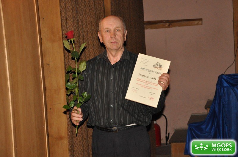 Podziękowania za współpracę na rzecz kultury z Miejsko – Gminnym Ośrodkiem Kultury otrzymali: dyrektor MGOPS Tomasz Siekierka, sekretarz Gminnej Komisji Rozwiązywania Problemów Alkoholowych Ireneusz Cichy oraz Bogumiła Senska ze Środowiskowego Domu Samopomocy.