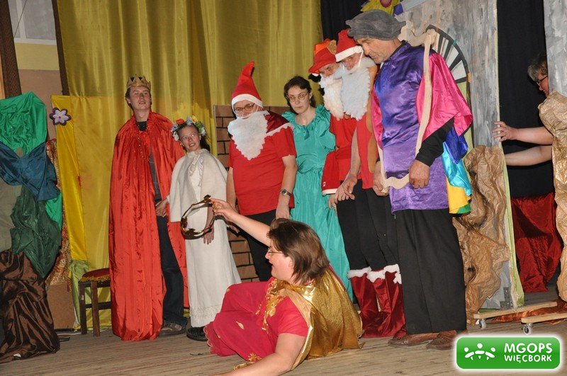 Część artystyczną uroczystości bardzo szeroko wypełniło przedstawienie grupy teatralnej Barakuda ze Środowiskowego Domu Samopomocy. Grupa wystawiła “Królewnę Śnieżkę i siedmiu krasnoludków”.