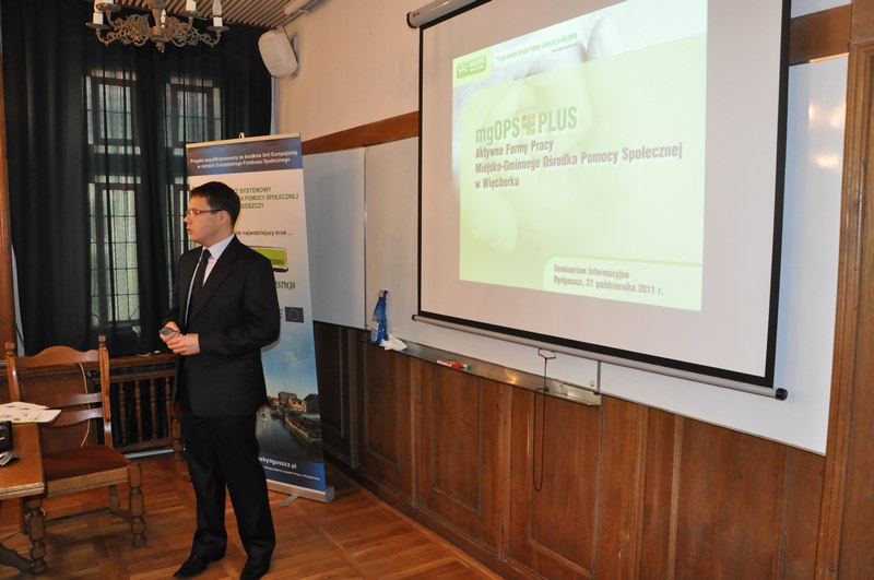 Seminarium odbyło się w budynku Polskiego Towarzystwa Ekonomicznego w Bydgoszczy. MGOPS Więcbork reprezentowali, dyrektor Tomasz Siekierka oraz koordynator projektu systemowego Paweł Węgrzyn, którzy przedstawili prezentację multimedialną obrazującą działania MGOPS i jego jednostek podległych w zakresie – szeroko pojętej – aktywnej integracji.