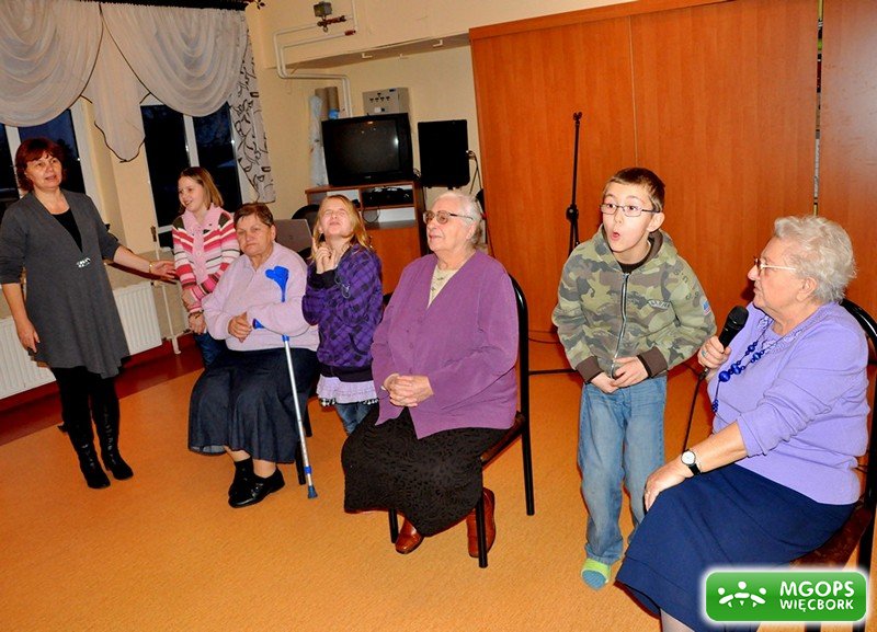 18 stycznia 2012r. w Środowiskowym Domu Samopomocy w Więcborku pracownicy socjalni Miejsko-Gminnego Ośrodka Pomocy Społecznej wraz ze Świetlicą Środowiskową „Uśmiech” zorganizowali uroczyste spotkanie z okazji Dnia Babci i Dziadka. Przybyło 28 osób niepełnosprawnych, samotnych, w wieku poprodukcyjnym. Po przywitaniu gości wystąpiły dzieci. Na to wyjątkowe święto przygotowały wiersze i wręczyły własnoręcznie wykonane kwiaty. Młode pokolenie brało udział w konkursie pt. Babcia opowiada bajkę “wnukowi – wnuczce”; dopingowało wybranym seniorom w trakcie konkursu przyszywania guzika (osoby, które najszybciej przyszyły guzik otrzymały serduszko z napisem Cudowna Babcia, Cudowny Dziadek); były wspólne śpiewy, tańce które integrowały dwa pokolenia. Uczestnicy Klubu Seniora wspominali o swoich wnukach, prawnukach. Spotkanie zakończyło się kawą i skromnym poczęstunkiem. A pracownicy socjalni wręczyli drobne upominki z okazji tego jakże wyjątkowego święta. Jeden z uczestników Klubu Seniora, podsumował spotkanie: „Niesamowite święto! W oku kręci się łza na myśl o tym, że Ci młodsi pamiętają o nas”.