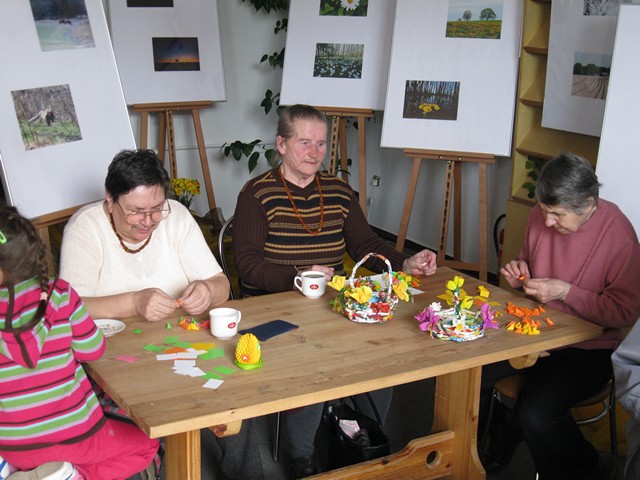 Miejsko – Gminna Biblioteka Publiczna w Więcborku zorganizowała dla Uczestników Klubu Seniora zajęcia komputerowe (odbywały się cyklicznie) oraz zajęcia manualne. Z papierowej wikliny stworzono eleganckie i efektowne koszyki, bardzo podobne do tradycyjnych wiklinowych oraz z origami wykonano ozdobne jajka.