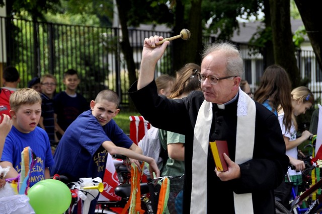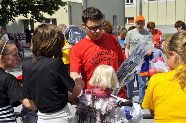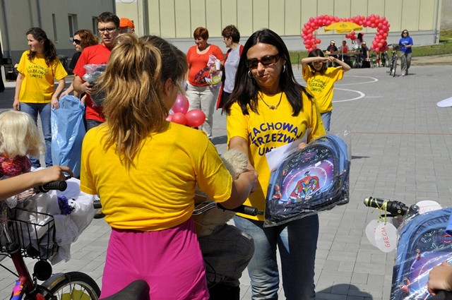 Po przyjeździe poszczególnych ekip wszystkich „rajdowiczów” przywitała Pani dyrektor Gimnazjum – Jolanta Zwiewka a członek Gminnej Komisji Rozwiązywania Problemów Alkoholowych ksiądz Franciszek Kurowski odmówił modlitwę i poświęcił jednoślady, po czym komisja wybrała 15 najlepiej ozdobionych rowerów. Każdy wyróżniony otrzymał nagrodę rzeczową. Następnie dzieci i młodzież rywalizowały w różnych konkursach, takich jak: „żółwia” jazda rowerem, jazda z przeszkodami, rzut na jeża, było przeciąganie liny, oraz odbył się drużynowy konkurs wiedzy na temat uzależnień i zdrowego trybu życia. Na zakończenie uczestnicy z poszczególnych szkół rywalizowali w mini turnieju piłki nożnej. Rozstrzygnięto również konkurs plastyczny na plakat nt. „Ja i moja rodzina”, ogłoszony w ramach ogólnopolskiej kampanii „Postaw na Rodzinę”. Poza konkursami młodzież mogła odwiedzić stanowisko policyjne, gdzie można było oznakować swój rower, czy też zobaczyć broń policyjną. Nie zabrakło stoiska z tradycyjną grochówką, były napoje i słodycze. Na zakończenie tegorocznego Rajdu odbyło się nagrodzenie zwycięzców poszczególnych konkursów.