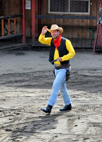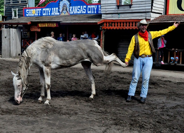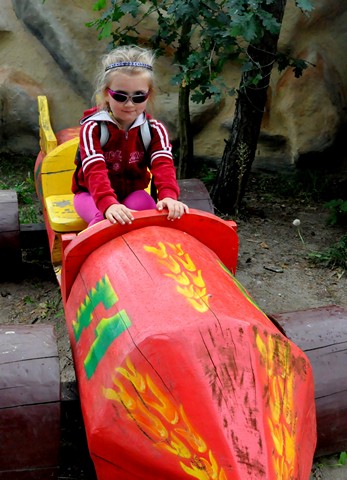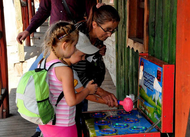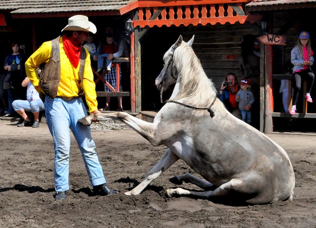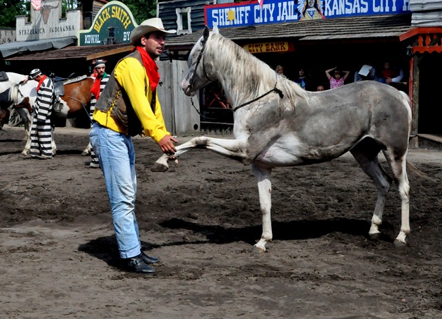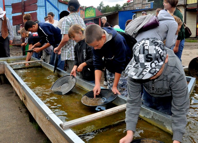 Podglądaliśmy codzienne życie westernowego miasteczka – przywitaliśmy się z szeryfem, Indianami, jechaliśmy pociągiem Kansas-City-Express oraz pojazdem Flinstonów. Samodzielnie szukaliśmy samorodków złota – za trzy znalezione samorodki przysługiwał w nagrodę lizak!
