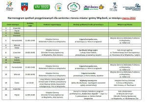 Harmonogram spotkań seniorów w miesiącu wrześniu