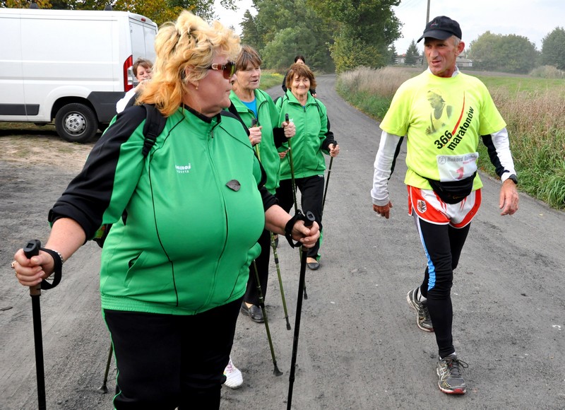 W ramach zajęć nordic walking, więcborscy seniorzy skupieni wokół Klubu Seniora, działającego przy Miejsko-Gminnym Ośrodku Pomocy Społecznej w Więcborku, wspierali dzisiaj ultramaratończyka z Wituni, Ryszarda Kałaczyńskiego, który chce pobić Rekord Guinnessa. Pan Ryszard planuje w 366 dni pod rząd przebiec 366 maratonów.