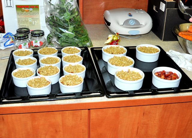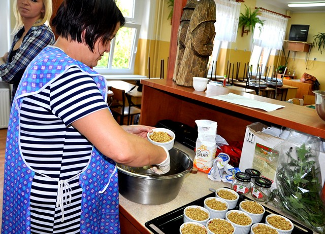 Po ciężkiej, lecz efektywnej pracy – na stołach pojawiły się potrawy z wykorzystaniem owoców i warzyw z naszych krajeńskich ogrodów i rabat warzywnych. Pojawiły się m.in. gołąbki z kaszą gryczaną, karkówka zapiekana ze śliwkami, a na deser rabarbar zapiekany z kruszonką. Podczas kolejnych zajęć odkrywać będziemy potrawy z drobiu, w tym również kaczyny i gęsiny (obecnie już troszkę zapomnianych).