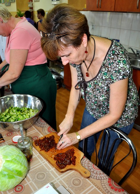 Podczas pierwszych zajęć, w żadnym stopniu nie sprawdziło się powiedzenie „gdzie kucharek 6 tam nie ma co jeść” – gospodynie udowodniły, iż siła leży w jedności, a współpraca poparta rewelacyjną koordynacją prac prowadzącej zajęcia daje wyjątkowo smakowite rezultaty.