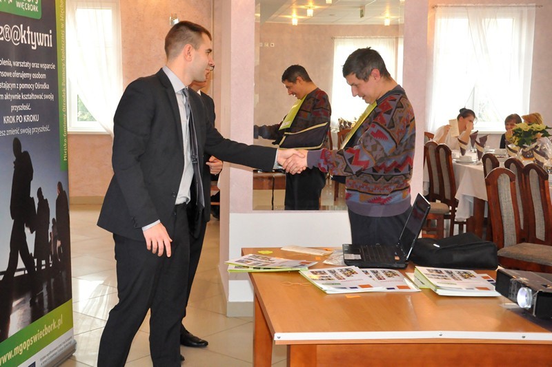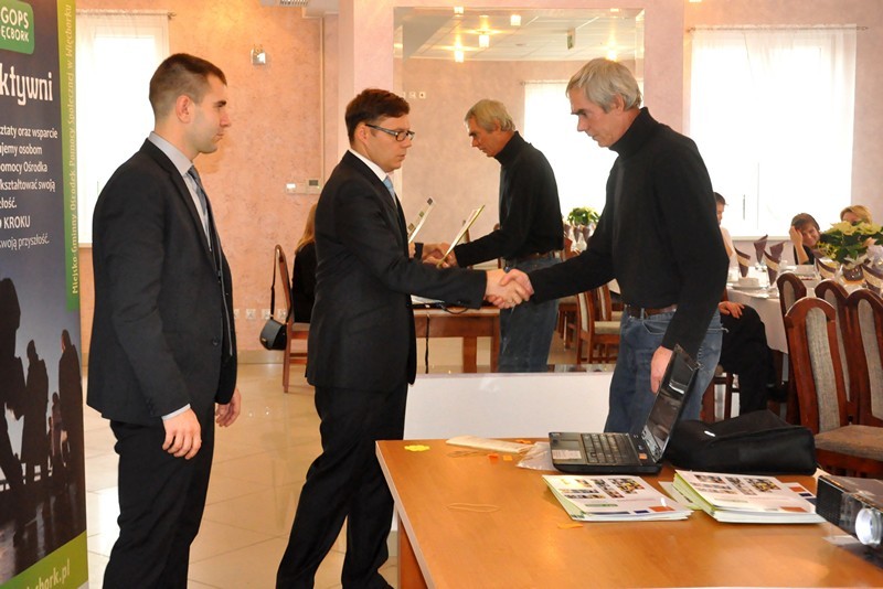 Spotkanie rozpoczęło się od słów dyrektora Miejsko-Gminnego Ośrodka Pomocy Społecznej w Więcborku, Tomasz Siekierki, który przywitał uczestników oraz pogratulował im ukończenia udziału w projekcie. Później głos zabrał koordynator projektu, Paweł Węgrzyn. Przedstawiona przez niego prezentacja była podsumowaniem działań, które udało się zrealizować w 2014 roku. Koordynator projektu skupił się głównie na omówieniu ścieżek wsparcia i zaprezentowaniu fotografii z zajęć.