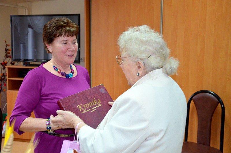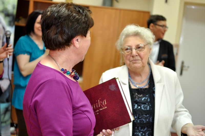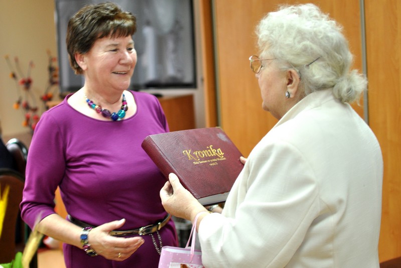 Później odbyło się symboliczne przekazanie kroniki, którą od teraz prowadzić będzie Teresa Górniak. – Mam dla pani, pani Tereso, prezent. To kredki, na pewno się przydadzą – powiedziała była już kronikarka, wręczając koleżance księgę wraz z upominkiem.