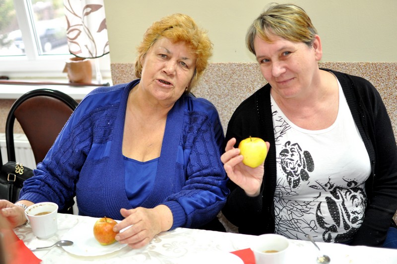 Później krótki program artystyczny zaprezentowali uczestnicy Środowiskowego Domu Samopomocy w Więcborku. Po jego zakończeniu, artyści wręczyli seniorkom jabłka.