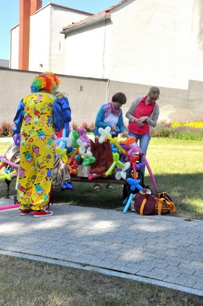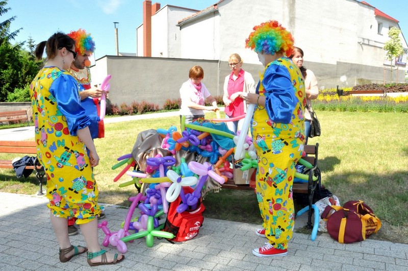 Organizację przedsięwzięcia wspierali m.in. seniorzy skupieni w więcborskim Klubie Seniora. Barwnie przebrani klubowicze rozdawali wodę oraz balonowe kwiatki i pieski wykonane przez pracowników MGOPS w Więcborku.
