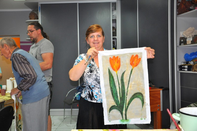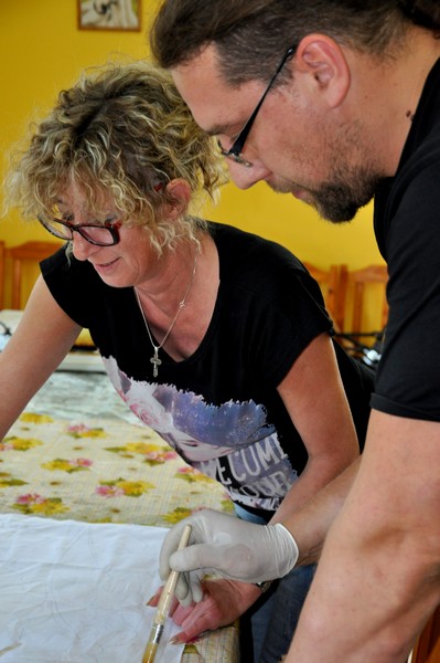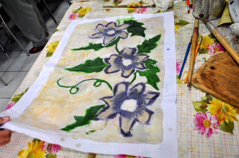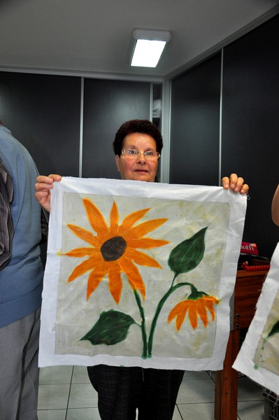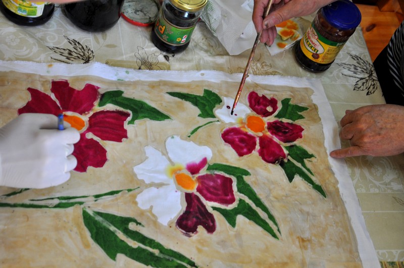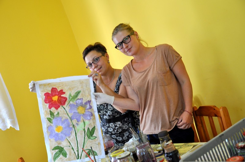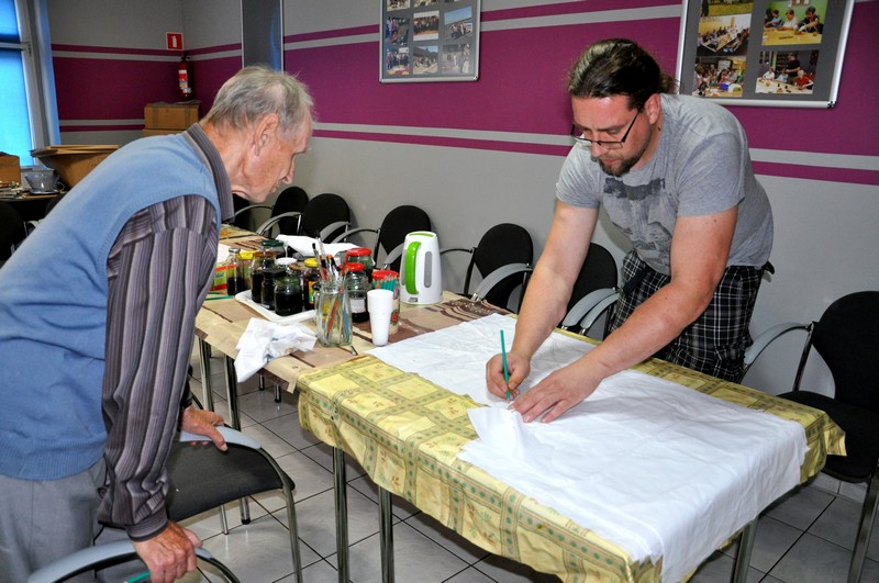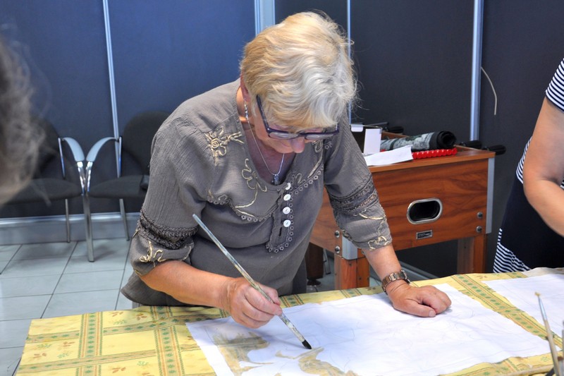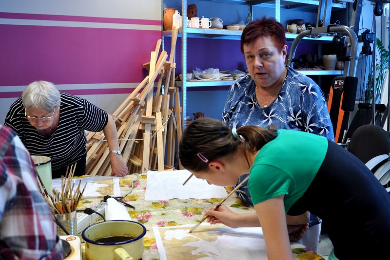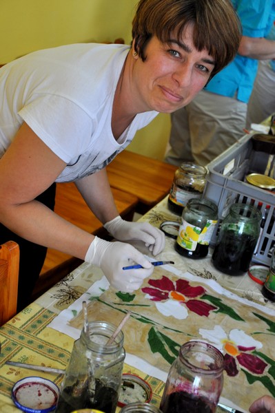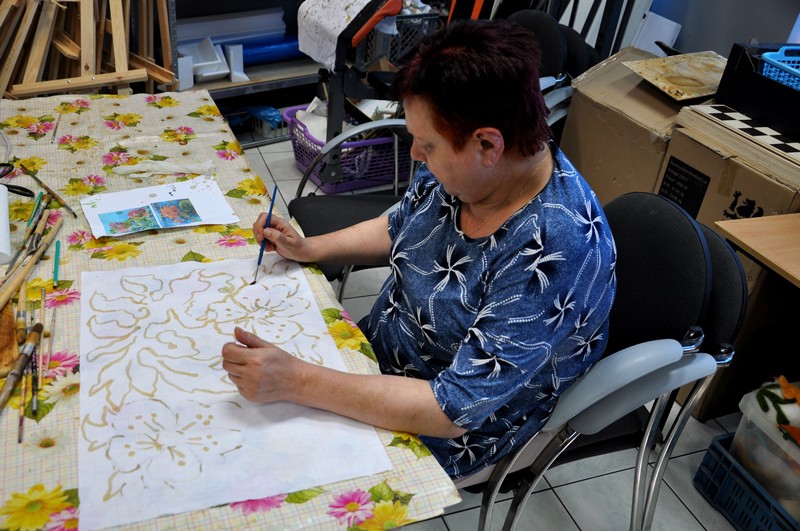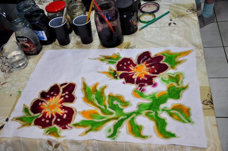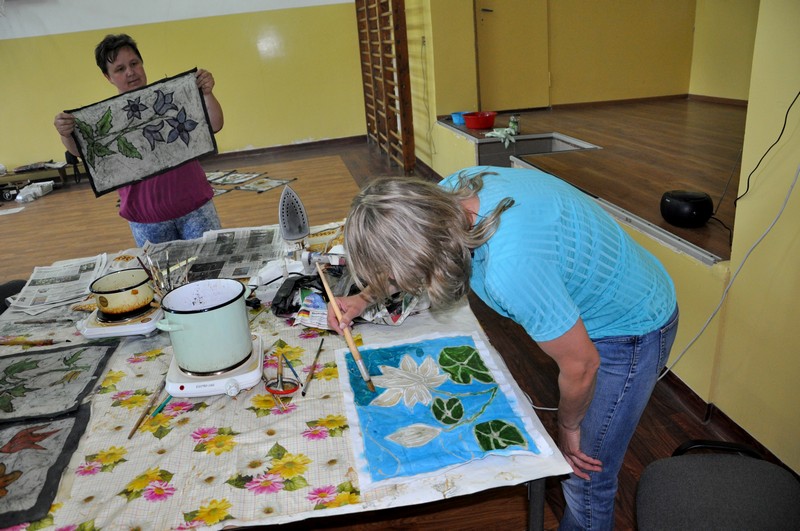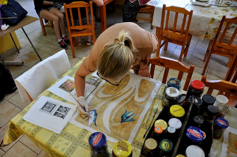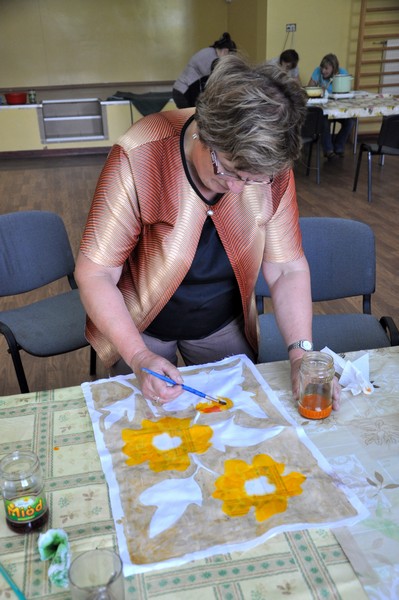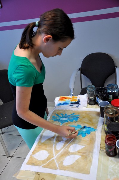 Tkanina jest następnie ręcznie barwiona, przez co nabiera niepowtarzalnego charakteru – każdy obraz jest wyrazem autorskich pasji i wyobraźni. Na zajęciach powstały prawdziwe dzieła sztuki, które w świetle dziennym przypominają witraże. Warsztaty prowadzi pan Maciej Łucyszyn, wykwalifikowany trener.