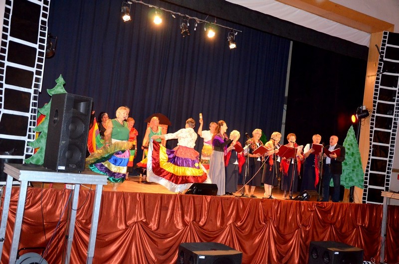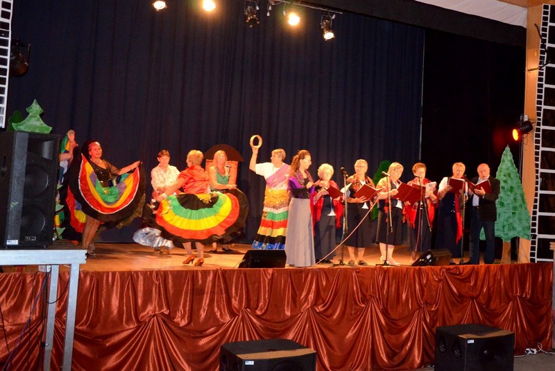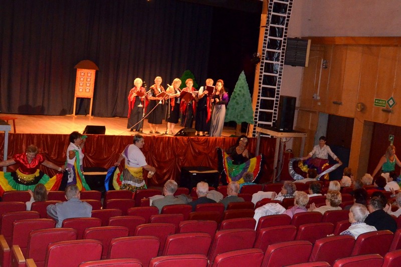 Przygotowano dla naszych gości bardzo atrakcyjny i bogaty scenariusz pobytu. W części artystycznej, na deskach sali kinowej Miejsko-Gimnnego Ośrodka Kultury w Więcborku, zaprezentowały się dwie grupy artystów. Na początku wystąpiła grupa teatralna „RYM CYM CYM” z przedstawieniem „Bawmy się wesoło”, następnie mogliśmy wysłuchać kilku piosenek zespołu pieśni biesiadnej „Wesołe Nutki”. Rozwojem artystycznych talentów zajmuje się więcborski Dom Kultury, pod czujnym okiem Renaty Bloch i Agaty Pufal.
