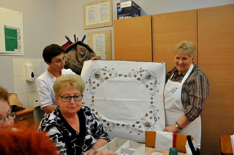 Ciekawostką jest, iż w warsztatach uczestniczy członkini grupy hafciarskiej „Igłą malowane”, autorka przepięknych serwet i bieżników zdobionych tradycyjnych krajeńskim haftem. Seniorka podczas warsztatów zaprezentowała również własnoręcznie przygotowany proporzec (herb) promujący działalność grupy, zdradzając iż herb wykonany jest metodą hafciarską, nazywaną sztandarową.