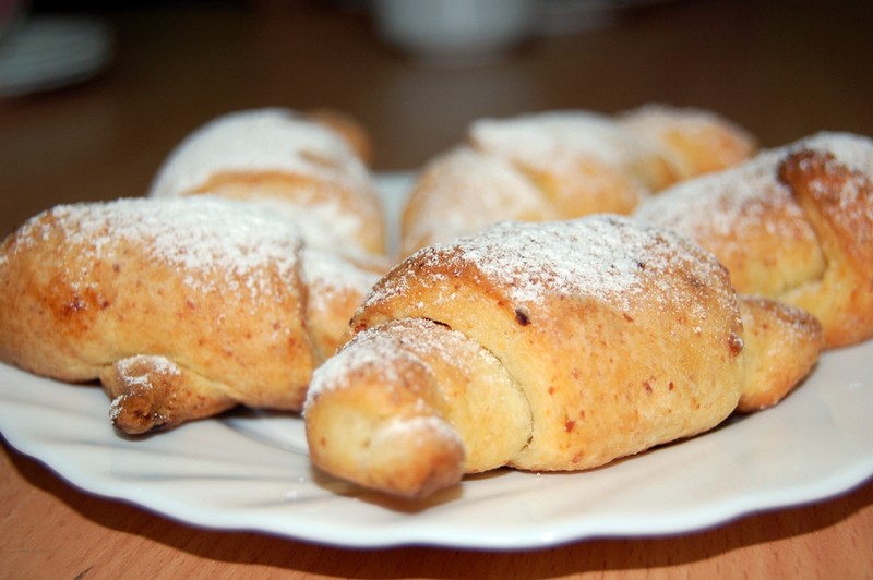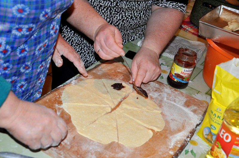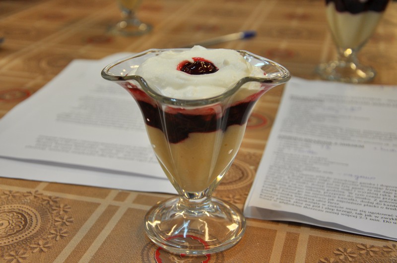 - oraz na słodko: deser z kaszy manny z wiśniami i rogale z serem