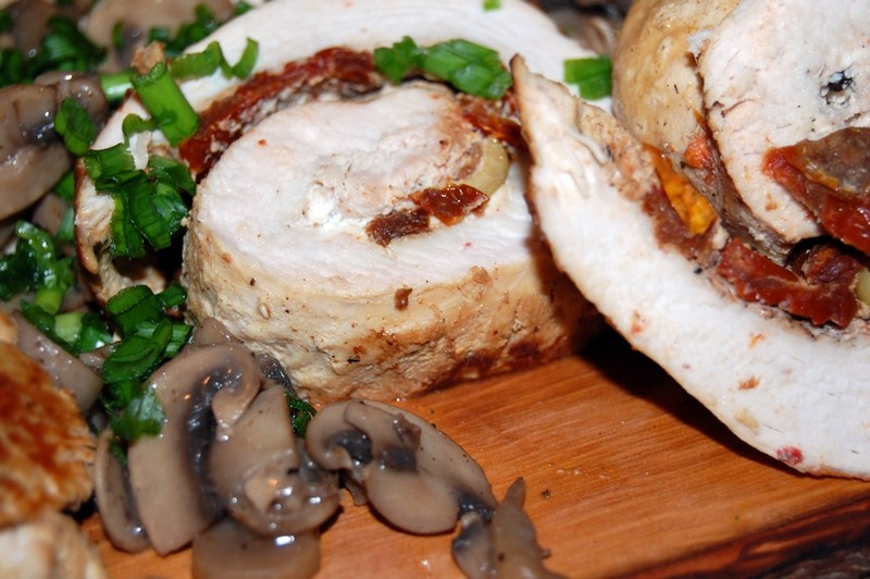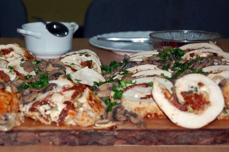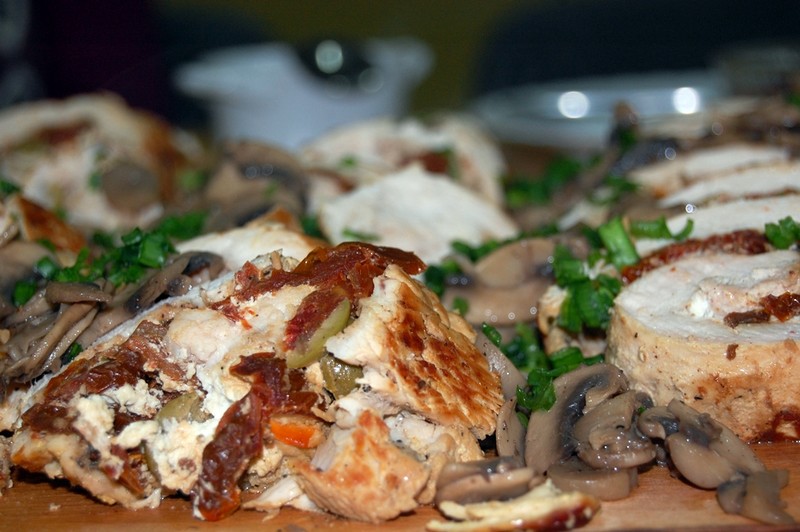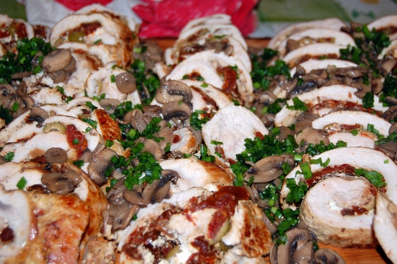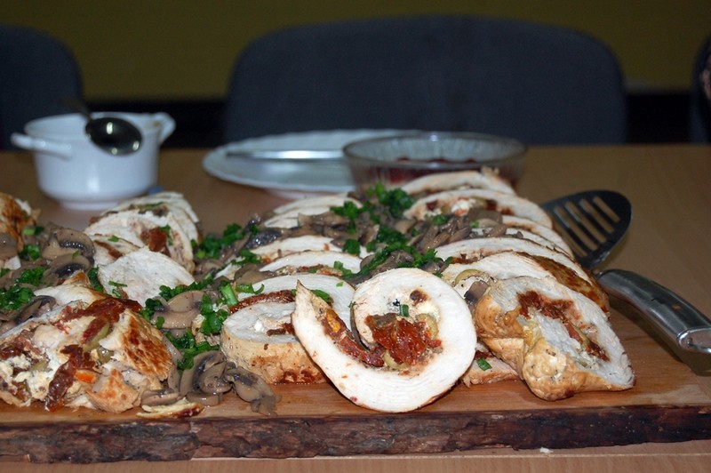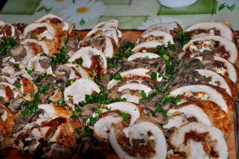 - rolady indycze z oliwkami, serem feta i suszonymi pomidorami,