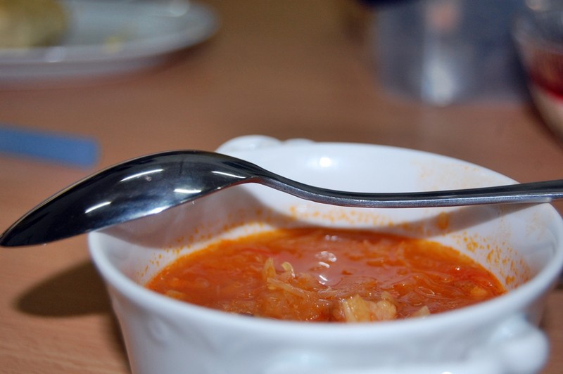 - pomidorowy kapuśniak a do tego bułeczki z żółtym serem,
