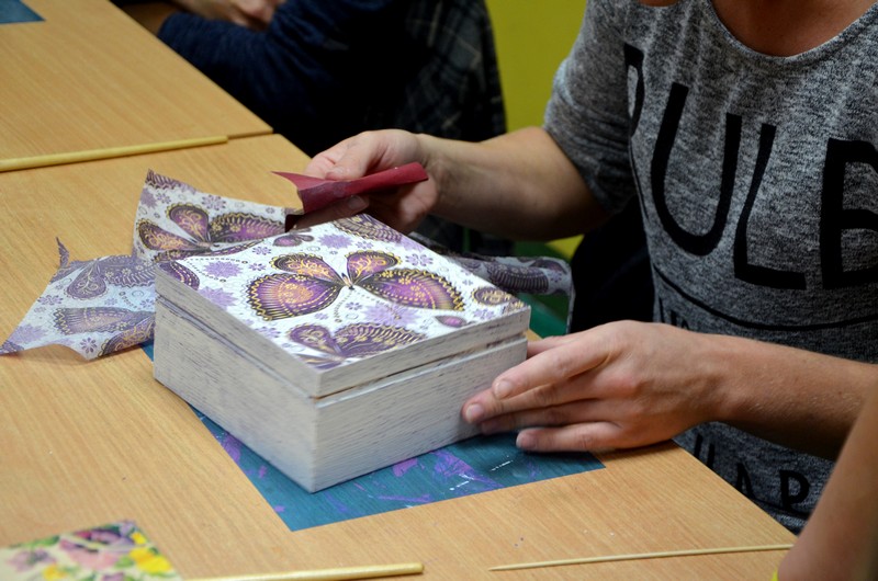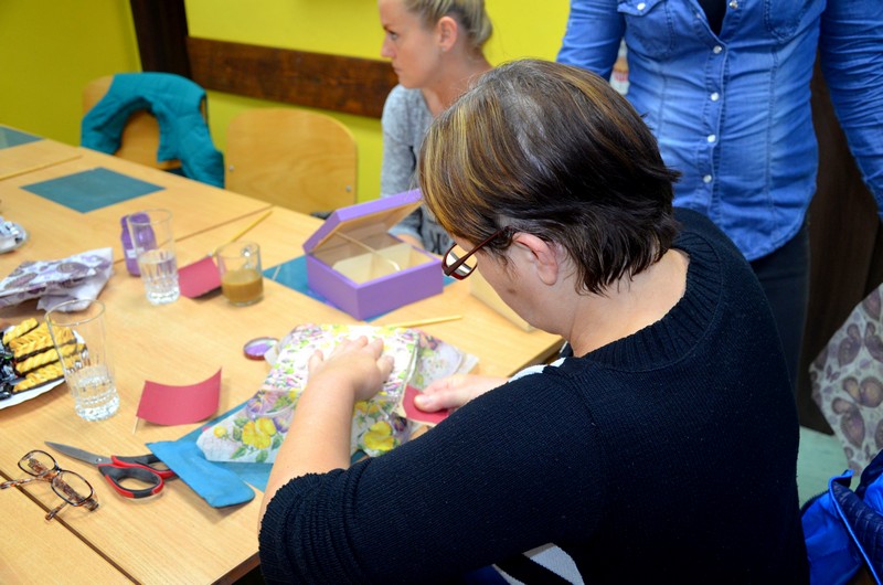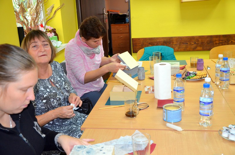 Tym razem uczestniczki Klubu Integracji Społecznej wzięły udział w warsztacie rękodzieła artystycznego, który odbył się w Świetlicy Środowiskowej “Uśmiech” w Więcborku. Podczas zajęć mieszkanki gminy Więcbork ozdabiały metodą decoupage herbaciarki.