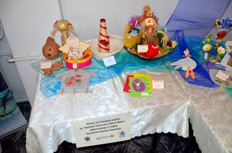 Dnia 30 września 2016 roku w Miejsko-Gminnej Bibliotece Publicznej w Więcborku, odbył się wernisaż prac więcborskich seniorów skupionych wokół Klubu Seniora działającego przy Miejsko-Gminnym Ośrodku Pomocy Społecznej w Więcborku, wykonanych podczas warsztatów rękodzielniczych i ceramicznych w ramach projektu “Aktywność Seniora przez różowe okulary”, dofinansowanego ze środków Województwa Kujawsko-Pomorskiego.