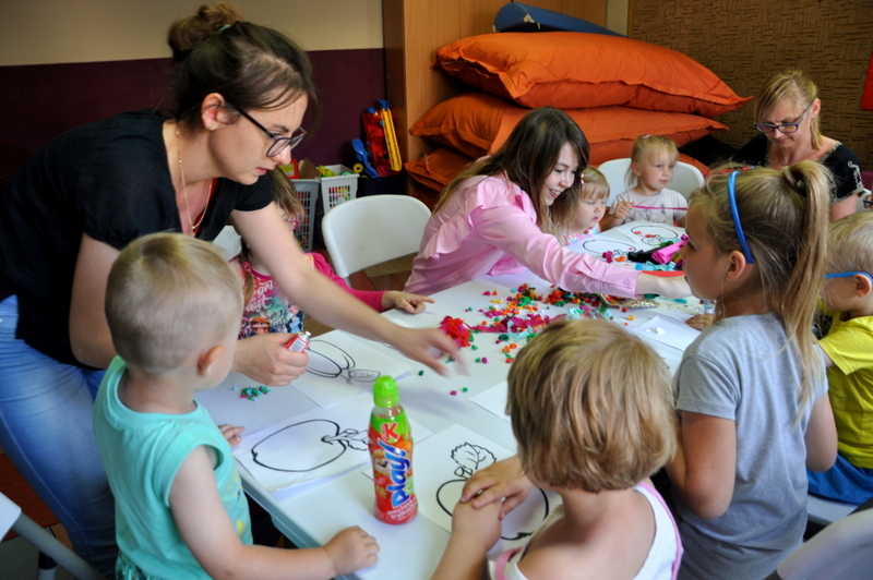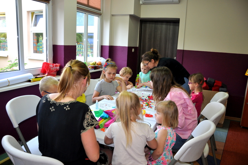 W ramach Projektu rodzice uczestniczyli w warsztatach doskonalących i wzmacniających ich umiejętności opiekuńczo – wychowawcze. Na czas trwania warsztatów dzieciom zapewniono opiekę i atrakcyjne formy spędzania czasu wolnego – zajęcia ruchowe, plastyczne – zabawa z krepą oraz muzykoterapię. Na twarzach dzieci zagościł uśmiech.