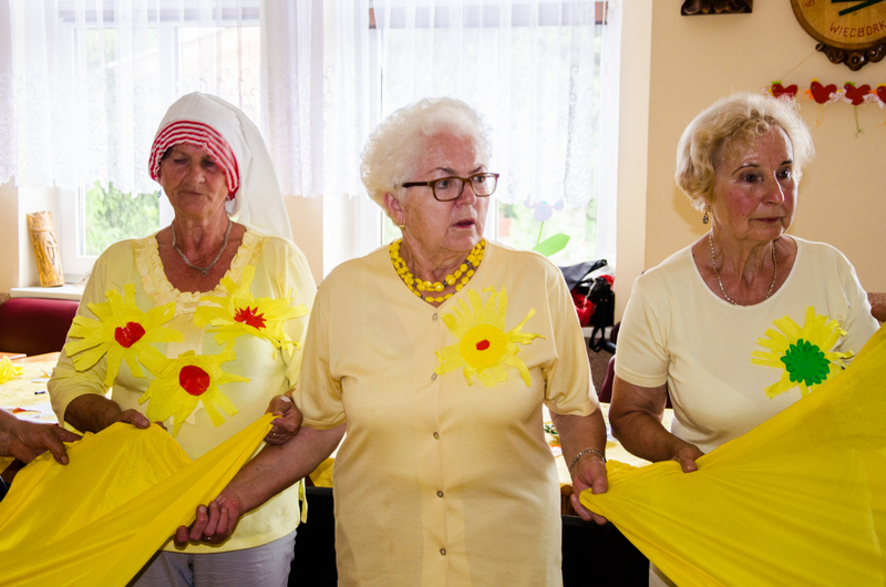 Jak zwykle, zajęcia animacyjne odbyły się w sali Środowiskowego Domu Samopomocy w Więcborku. Poprowadziła Joanna Nowakowska. Na początku seniorzy przygotowali słoneczne kotyliony. Później odbyły się konkursy, a na koniec zabawa taneczna.