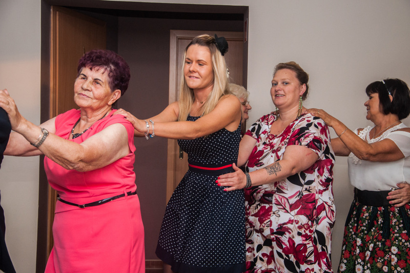 Spotkanie poprowadził niesamowity DJ Łukasz Domek, który oprócz znakomitej oprawy muzycznej, przygotował dla przybyłych całą masę atrakcyjnych konkursów i quizów z nagrodami. Seniorzy praktycznie nie schodzili z parkietu, bawiąc się w swoich kapeluszach przygotowanych na warsztatach rękodzielniczych w ramach projektu. Nie zabrakło oczywiście poczęstunku. Spotkanie trwało do późnych godzin wieczornych.