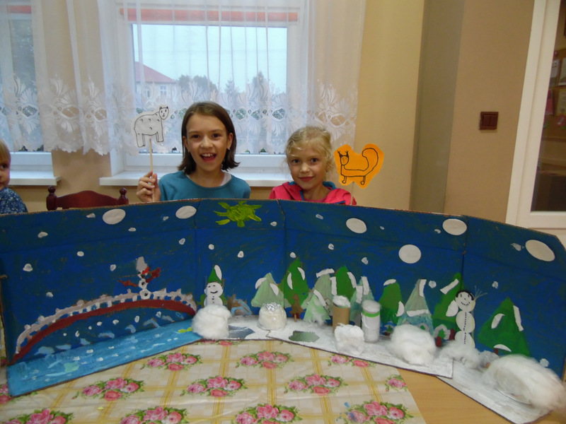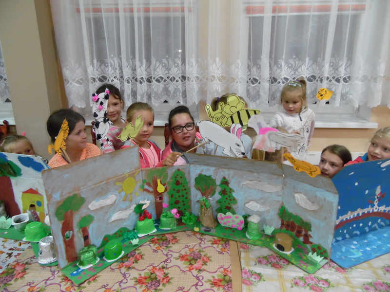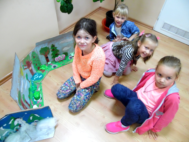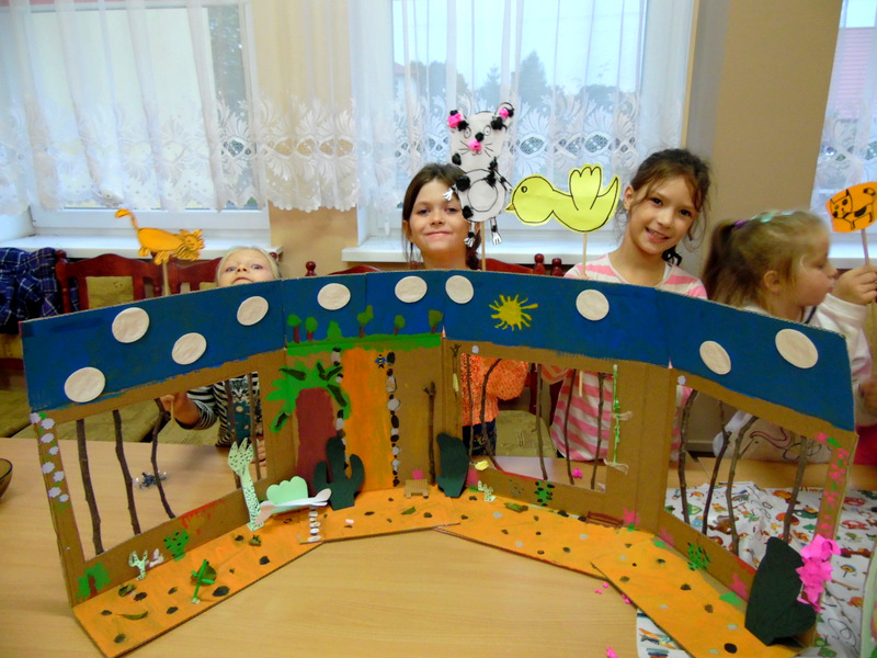 Podczas wrześniowych zajęć w Runowie Krajeńskim tematem spotkań był teatrzyk kukiełkowy. Dzieci opracowywały scenariusz, wykonały postacie i elementy dekoracyjne. Odgrywały scenki, które na finalnym spotkaniu zostały uwiecznione na filmie. Ostatnie wrześniowe spotkanie to wstęp do październikowego bloku zajęć „Spójrz na siebie”, podczas których uczestnicy metodą stemplową wykonali własne portrety.