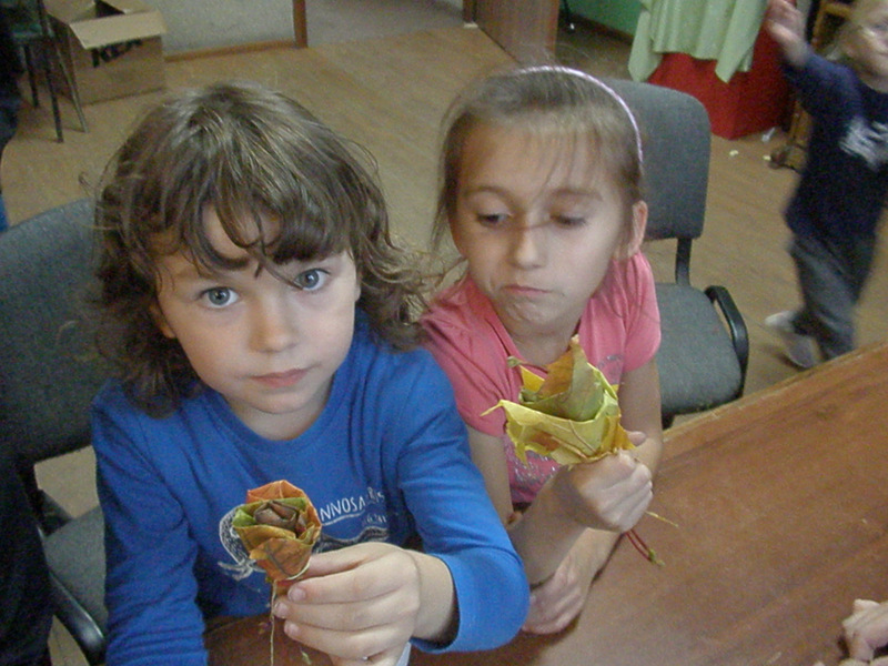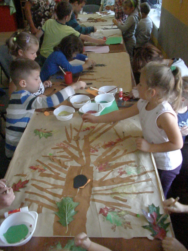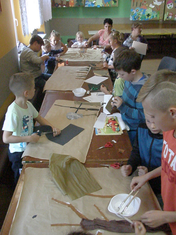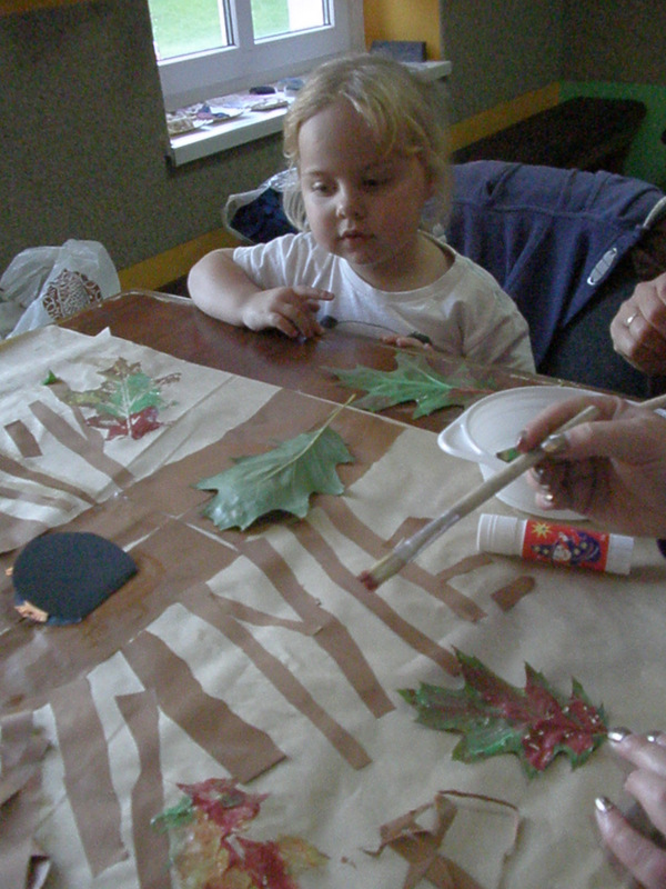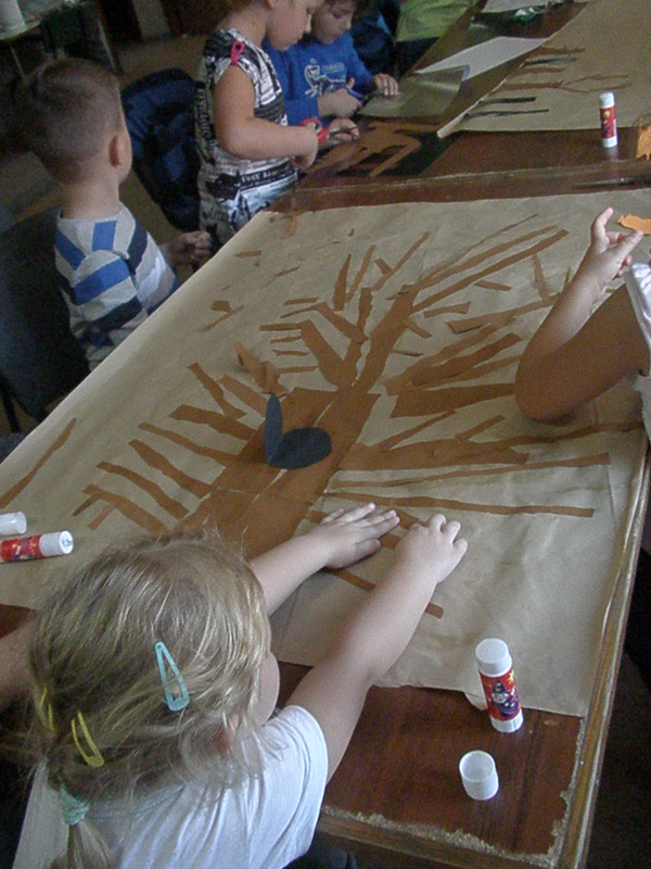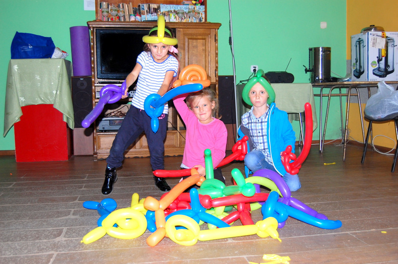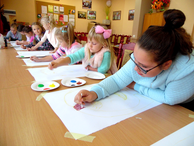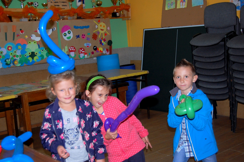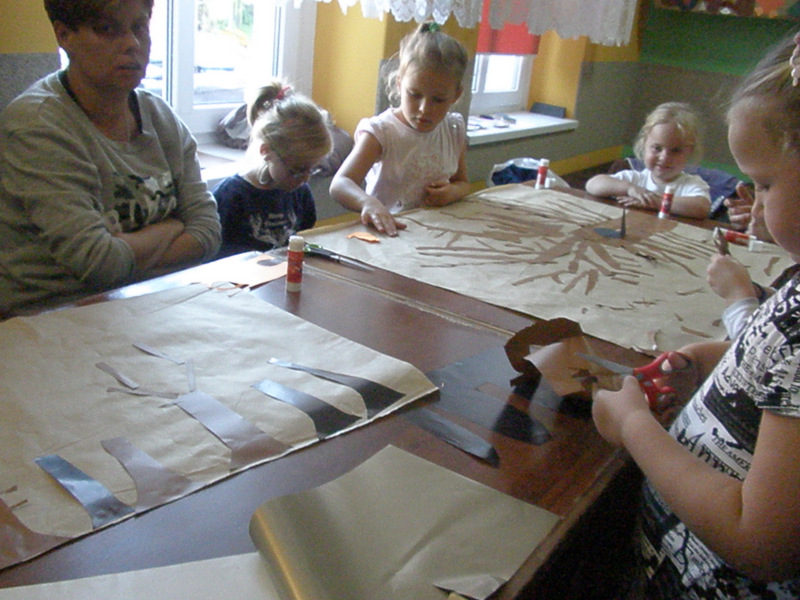 W Wituni podczas trzech zajęć odbywała kreatywna zabawa pn. „Bardzo głodna gąsienica.” Na początku spotkania dzieci poznały historię pewnej bardzo głodnej gąsienicy, która stała się inspiracją do działań plastycznych. Aby zaktywizować uczestników przygotowano szablony z wszystkim co zjadła gąsienica. Zadaniem dzieci było ułożenie ich w kolejności. Następnie maluchy namalowały komiks na podstawie historyjki oraz odegrały scenki. Na koniec wykonały w grupach piękne gąsienice na dużym arkuszu papieru. Na kolejnych zajęciach animatorka zorganizowała zabawę taneczną podczas której dzieciaki wykonywały cuda z balonów. W trakcie zabawy dzieci poznały podstawowe techniki skręcania balonów tworząc przeróżne konstrukcje (hełm, pies, łabędź itp.). Podczas kolejnego, ostatniego spotkania we wrześniu dzieci w grupach stworzyły jesienne drzewa wykorzystując do tego kolorowy papier, bibułę, zasuszone liście, farby. Rozpoznawały i segregowały liście wg gatunku. Następnie z kolorowych liści klonowych wykonały przepiękny bukiet róż.
