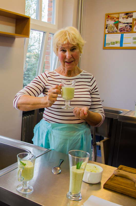 Zupa brokułowo-kalafiorowa, pierś z kurczaka z morelami i jabłkiem w sosie śmietanowym oraz kefir z banana, ogórka, jabłka i pietruszki – to dania przygotowane podczas pierwszego warsztatu kulinarnego, w którym udział wzięli uczestnicy więcborskiego Klubu Seniora.