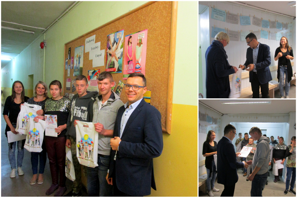 Dnia 18.09.2017 r. Przewodniczący oraz Sekretarz Gminnej Komisji Rozwiązywania Problemów Alkoholowych w Więcborku wręczyli młodzieży Zespołu Szkół Nr 2 Filia w Więcborku dyplomy wraz z nagrodami w ramach konkursu literacko – plastycznego pn. „Na skrzydłach przyjaźni” będącego elementem ogólnopolskiej kampanii “ZACHOWAJ TRZEŹWY UMYSŁ”. Osobom wyróżnionym jeszcze raz serdecznie gratulujemy!