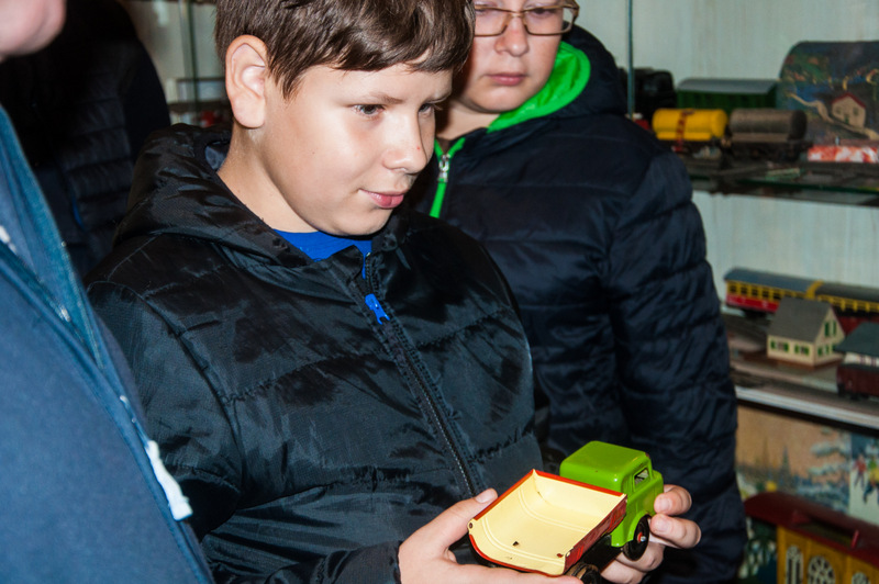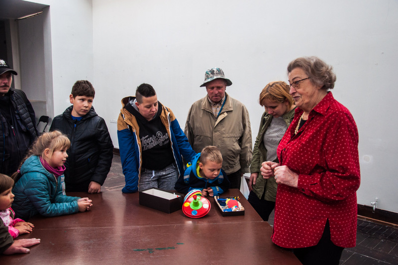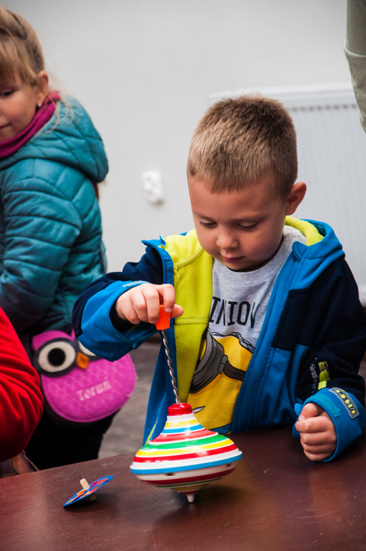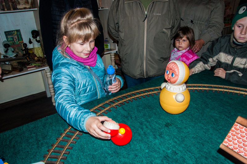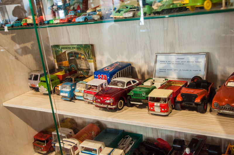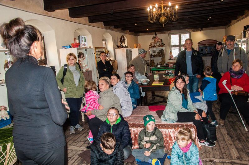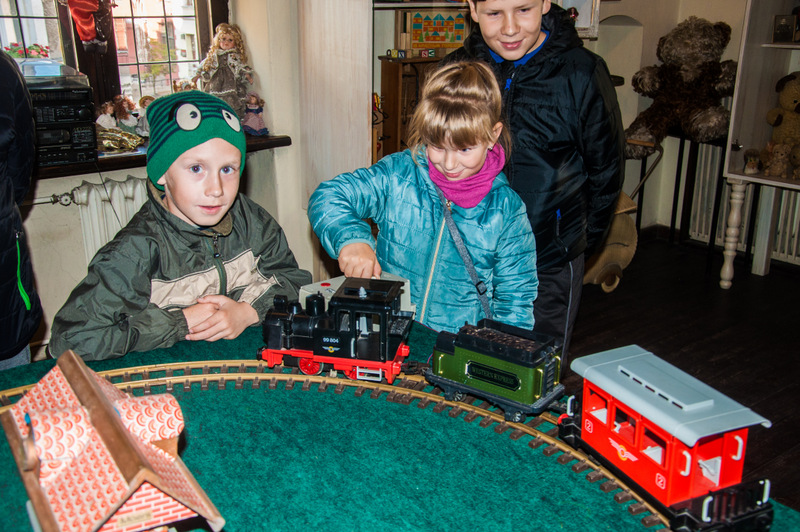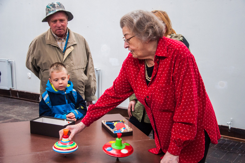 Pierwszym punktem wycieczki było Muzeum Zabawek i Bajek, gdzie znajduje się kolekcja zabawek z XIX i pierwszych dekad XX wieku. Zwiedzający mogli zobaczyć m.in. pierwszą lalkę barbie, pierwsze polskie lalki papierowe oraz kolekcję samochodów i gier planszowych rodem z wczesnego PRL-u. Odbył się również wykład na temat historii popularnego do dnia dzisiejszego bączka. Po krótkim instruktarzu każdy mógł samodzielnie wykonać zabawkę.