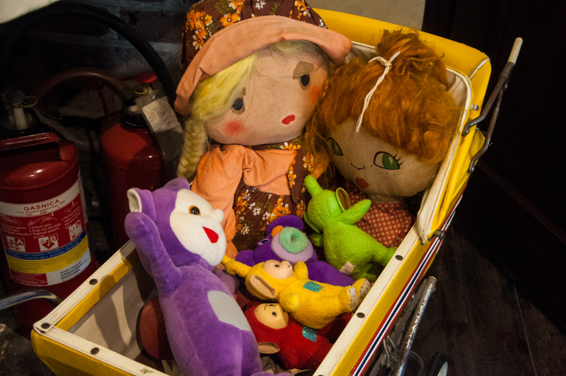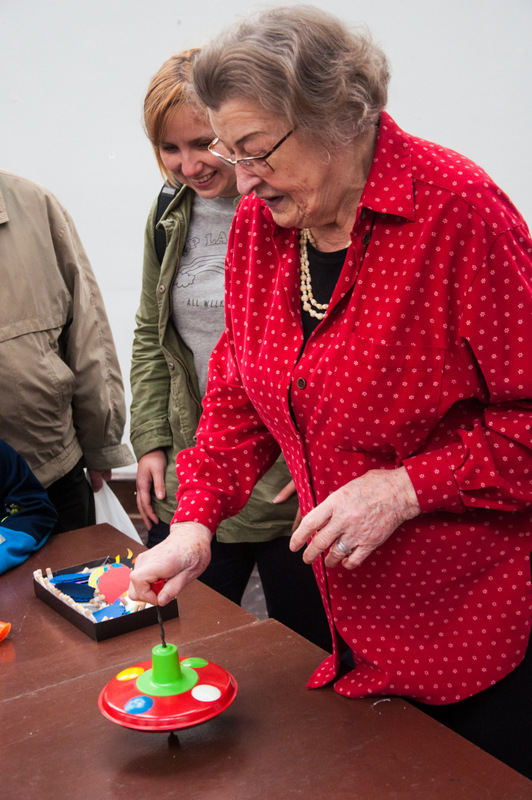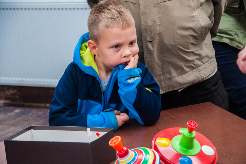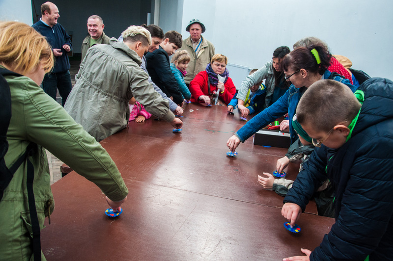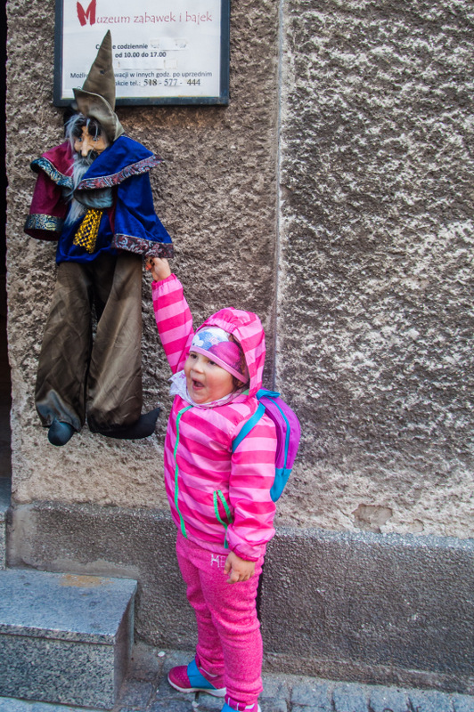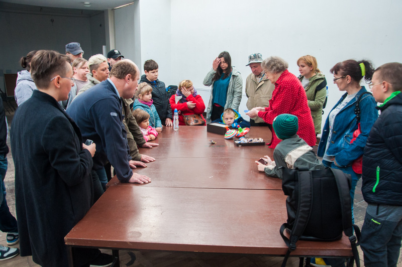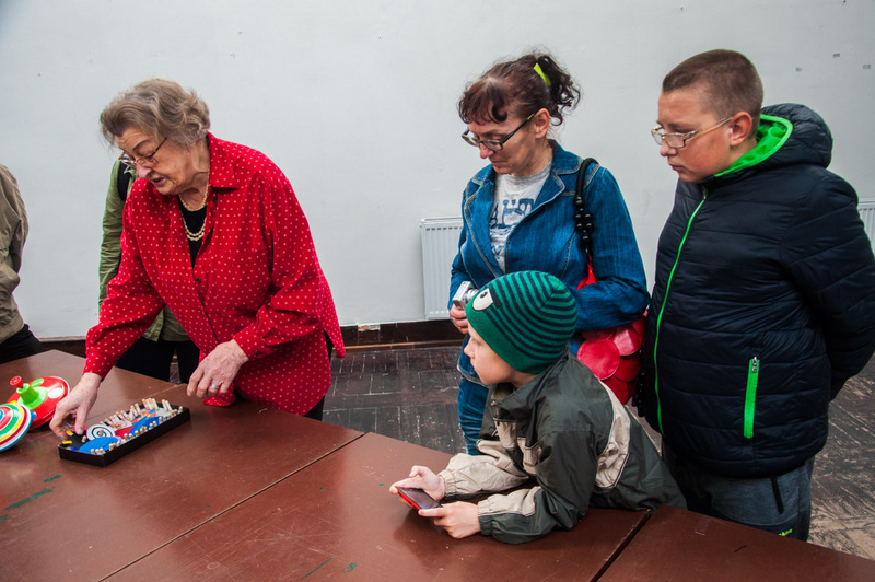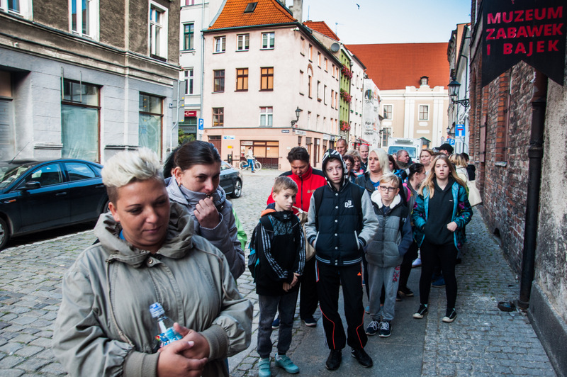 Pierwszym punktem wycieczki było Muzeum Zabawek i Bajek, gdzie znajduje się kolekcja zabawek z XIX i pierwszych dekad XX wieku. Zwiedzający mogli zobaczyć m.in. pierwszą lalkę barbie, pierwsze polskie lalki papierowe oraz kolekcję samochodów i gier planszowych rodem z wczesnego PRL-u. Odbył się również wykład na temat historii popularnego do dnia dzisiejszego bączka. Po krótkim instruktarzu każdy mógł samodzielnie wykonać zabawkę.