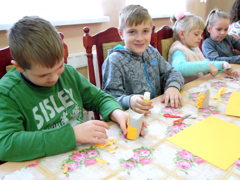 W październiku odbyły się cztery spotkania w Świetlicy Wiejskiej w Runowie Krajeńskim. W soboty odbywały się zajęcia dla dzieci i młodzieży. Podczas spotkań dzieci uczestniczyły w zabawach integracyjnych i pracach plastycznych. Wykonywały papierowe, ruchome sylwety swoich bohaterów. Malowały i ozdabiały finezyjne lampiony ze słoików, dekorowały uprzednio wykonane dzieła ceramiczne, a także przygotowywały elementy do jesiennych dekoracji – wiewiórki i sowy z recyklingu. Jedno piątkowe spotkanie skierowane było do kobiet, które w licznym gronie (19 osób) przybyły na warsztaty z filcowania, podczas których wykonały ozdoby świąteczne.