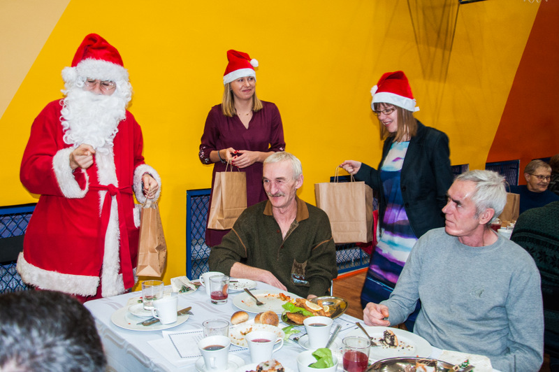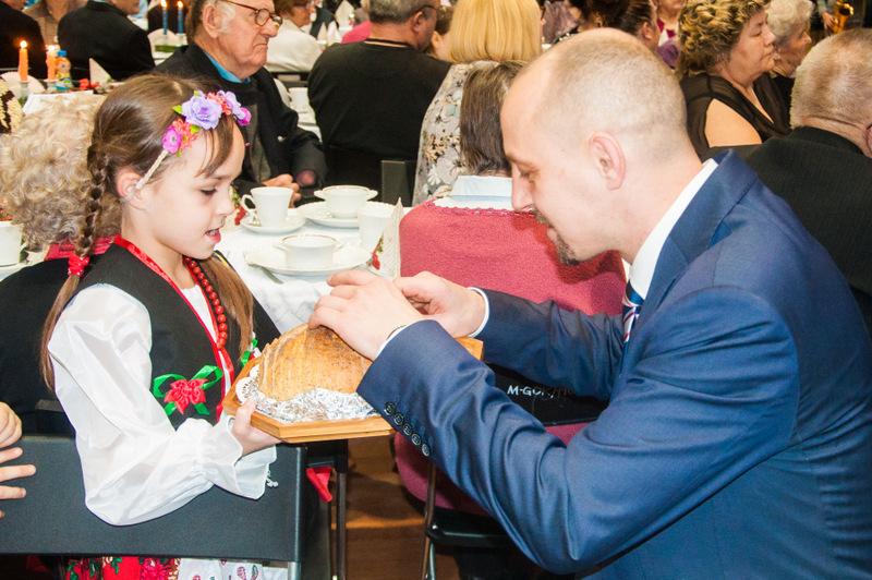 Tradycyjnie już, głos zabrał ksiądz prałat Franciszek Gabor, który przeczytał Ewangelię, a następnie zaintonował kolędę. Później wszyscy podzielili się opłatkiem i usiedli do kolacji. Na stole królowały: barszcz, pierogi, ryby, makowiec oraz piernik.