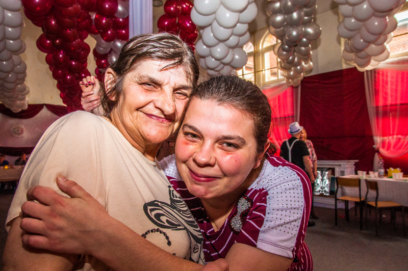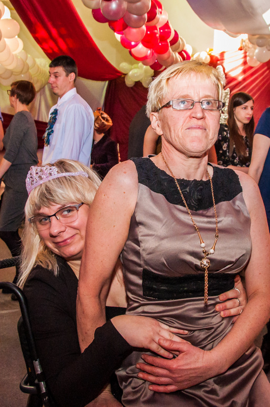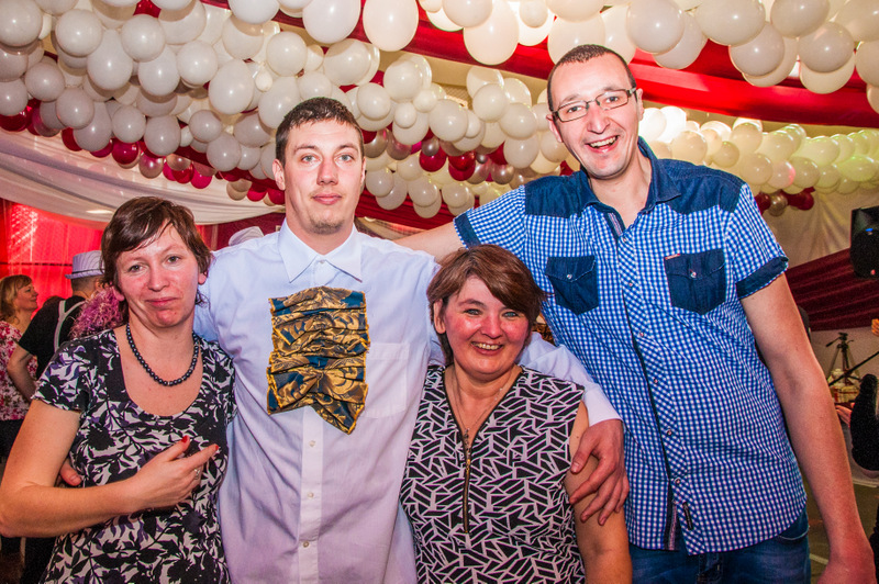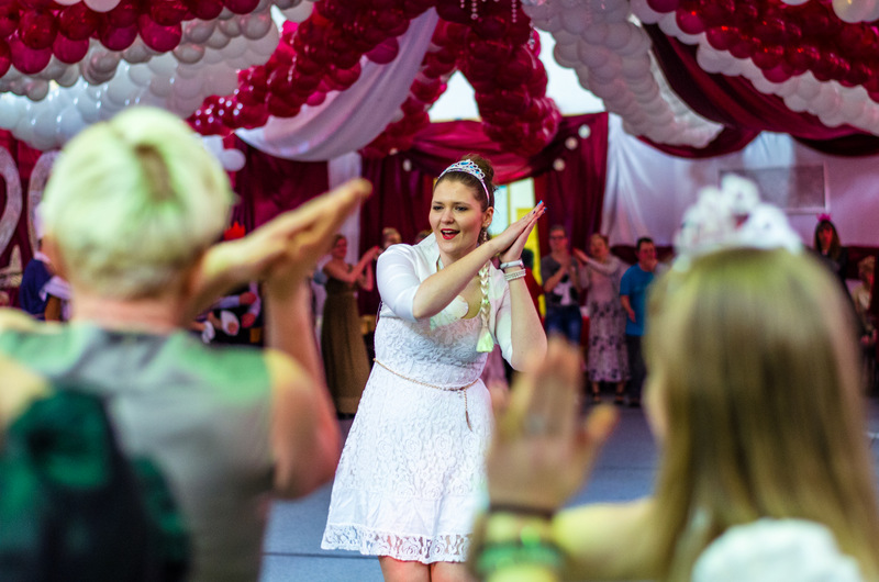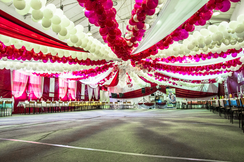 Sala gimnastyczna przypominała salę pałacową, a ogromne girlandy z bordowych i białych balonów zapierały dech w piersiach uczestników balu.