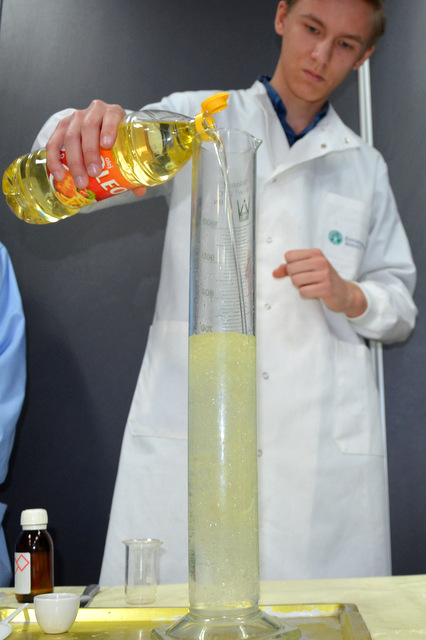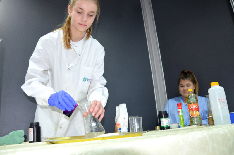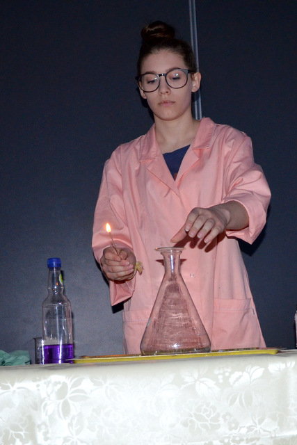 Młodzież zademonstrowała dziesięć eksperymentów o bardzo tajemnicznych nazwach, m.in. “kameleon”, “lokomotywa”, czy “duch”. Każdy pokaz został szeroko omówiony i wyjaśniony.