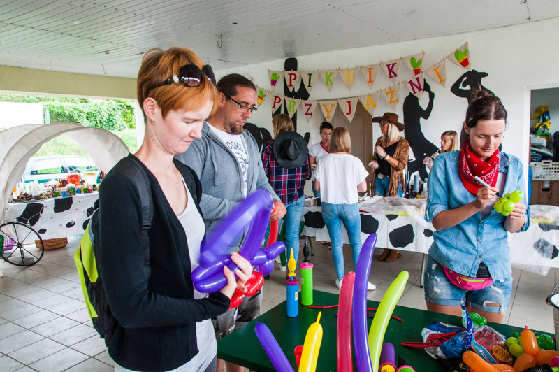Na przybyłych czekała moc atrakcji. Każde z dzieci na początku imprezy otrzymało imienny paszport, z miejscami na sześć naklejek, które można było uzyskać poprzez udział w konkurencjach takich jak m.in. wypłukiwanie złota, slalom na koniu, czy rzut butem szeryfa. Za zebranie wszystkich naklejek, każde z dzieci otrzymało słodki upominek. Piknik, za sprawą Państwa Fryziak z Suchorączka odwiedziły trzy wspaniałe alpaki i nie mniej wspaniała koza Miecia.