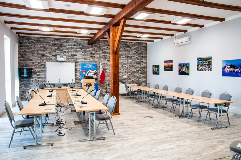 Na parterze nowo powstałego budynku znajdują się pomieszczenia socjalne, garażowe i gospodarcze Urzędu Miejskiego w Więcborku. Centrum mieści się na pierwszym piętrze. W ramach projektu obok budynku powstał parking na 35 miejsc.
