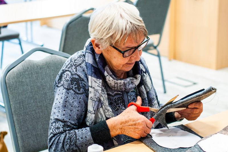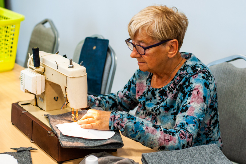 Warsztat poprowadziła Anna Cybulska, ze Świetlicy Środowiskowej “Uśmiech” w Więcborku. Grupa seniorów przygotowywała upominki na grudniową wieczerze wilijną, która odbędzie się w Szkole Podstawowej nr 1 w Więcborku. Podczas zajęć część uczestników zajęła się szyciem na maszynie, a część wycinaniem i wypychanie uszytych elementów, z których powstaną świąteczne skrzaty.