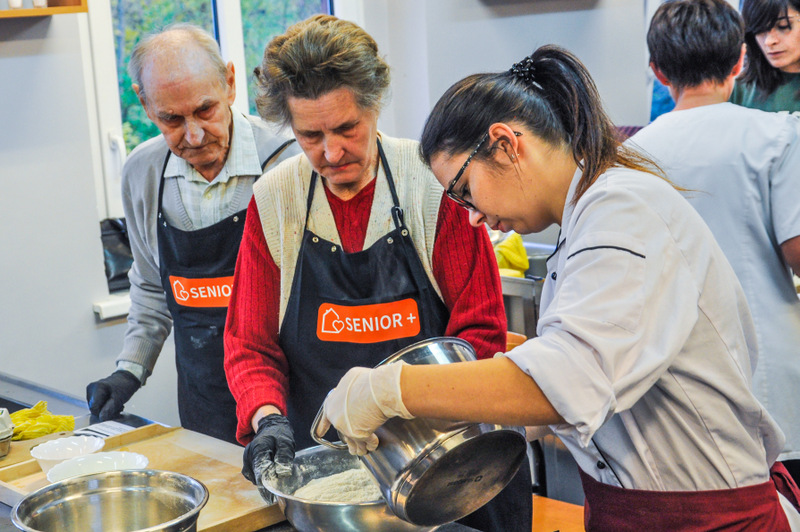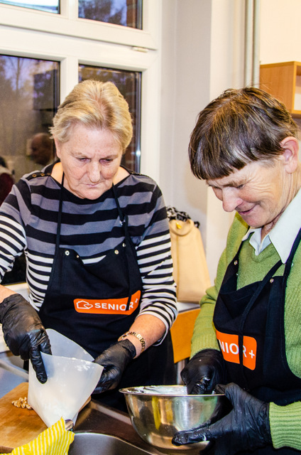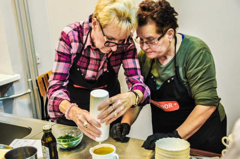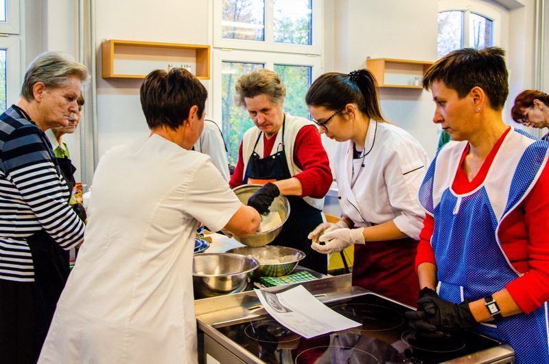 Zajęcia odbyły się w sali gastronomicznej Centrum Kształcenia Zawodowego i Ustawicznego w Więcborku, a poprowadziła je Pani Dorota Głyżewska-Fijas. Seniorów wspierali wolontariusze z Międzyszkolnego Klubu “Amicus” oraz Engin i Catarina, wolontariusze z programu Erasmus+.