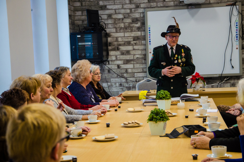Pan Wilczyński opowiedział o historii więcborskiego Bractwa oraz omówił genezę powstania organizacji. Sporo miejsca poświecił na prezentację działalności Bractwa. Seniorzy mogli podziwiać m.in. archiwalne zdjęcia oraz sztandar Kurkowego Bractwa Strzeleckiego w Więcborku.