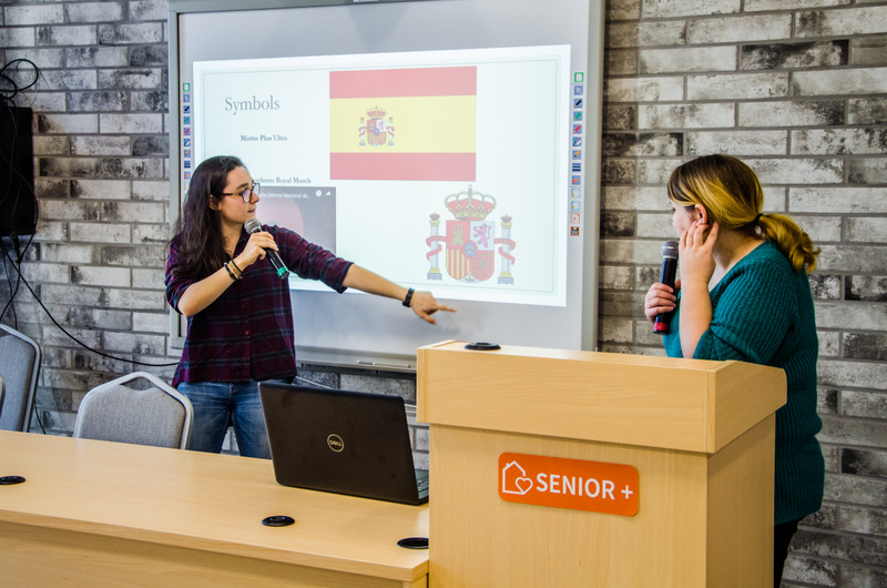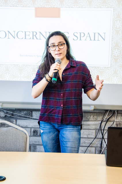 W swojej prezentacji, Ines opowiedziała o historii, kulturze, zwyczajach oraz atrakcjach turystycznych swojego kraju. Poruszyła aktualne kwestie społeczno-polityczne Hiszpanii. W prezentacji nie zabrakło oczywiście przepięknych zdjęć zachęcających do odwiedzenie Półwyspu Iberyjskiego. Wolontariuszka sporo miejsca poświęciła na przedstawieniu swojego rodzinnego miasta, Walencji.