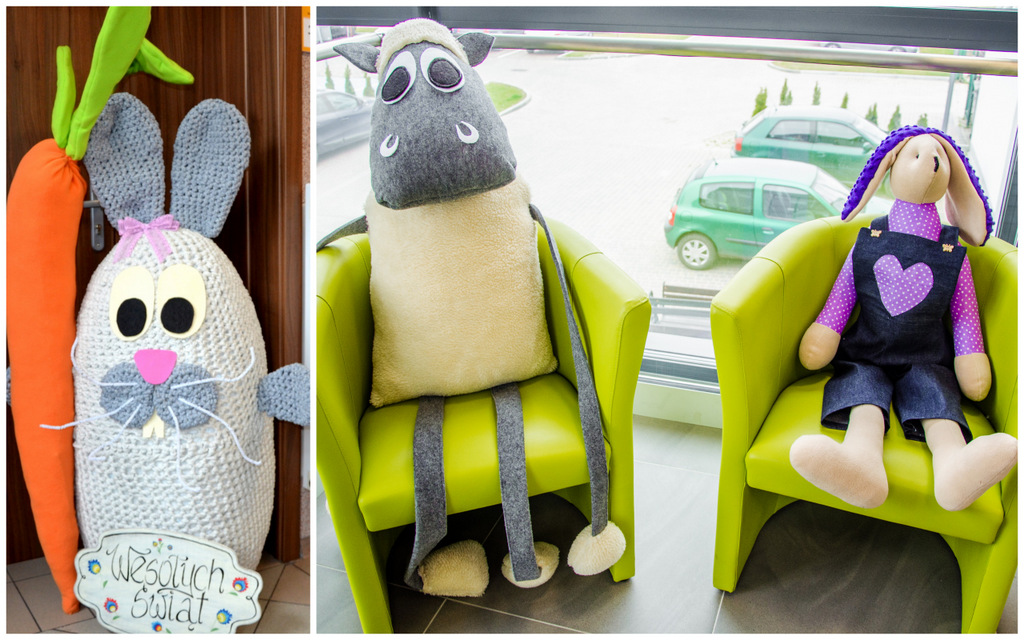 Z okazji zbliżających się Świąt Wielkiej Nocy w holu przy wejściu głównym do budynku Miejsko-Gminnego Ośrodka Pomocy Społecznej oraz Centrum Aktywności Seniora, ustawiliśmy baranka i świąteczne zające, wykonane przez Świetlicę Środowiskową “Uśmiech” w Więcborku. Zapraszamy do podziwiania tego niestandardowego rękodzieła wielkanocnego.