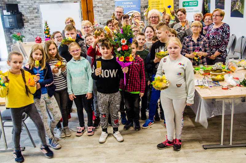 Uczniowie klasy 4a i 4b pod opieką pani Krystyny Strzelczyk, zachęcili seniorów do przygotowania stroików i plamy wielkanocnej. Po raz kolejny okazało się, że współpraca międzypokoleniowa potrafi przynieść bardzo wymierne efekty. Przepiękna palma przystroiła Centrum Aktywności Seniora. Więcborscy seniorzy serdecznie dziękują za kolejne kreatywne spotkanie.