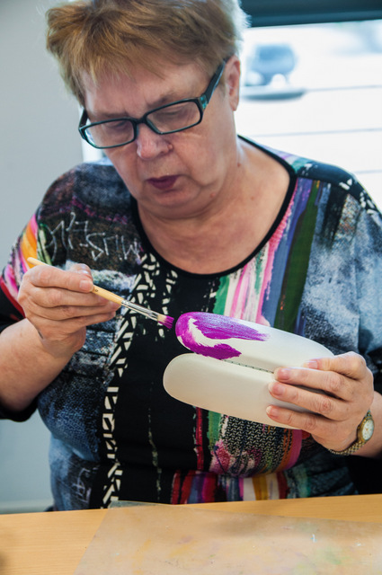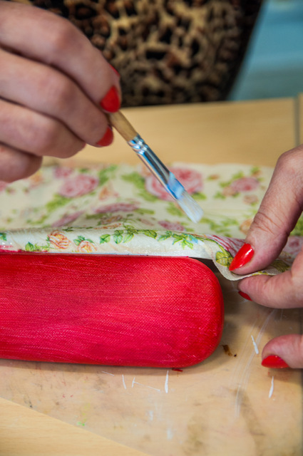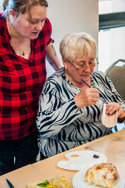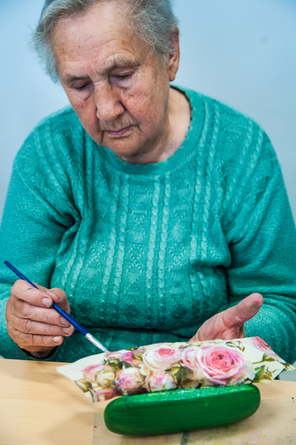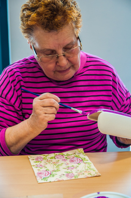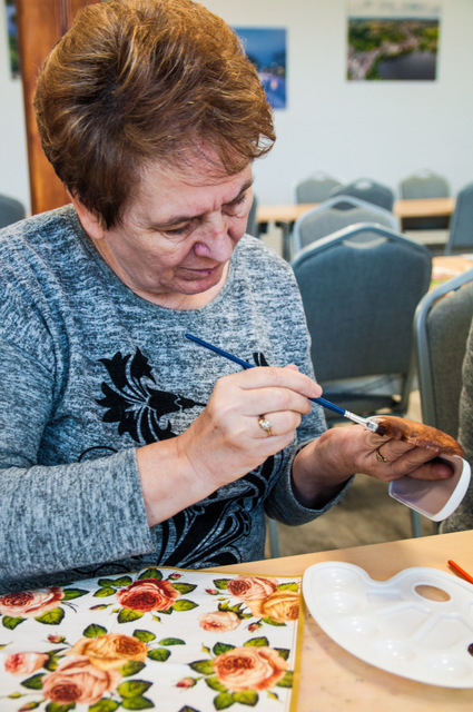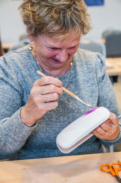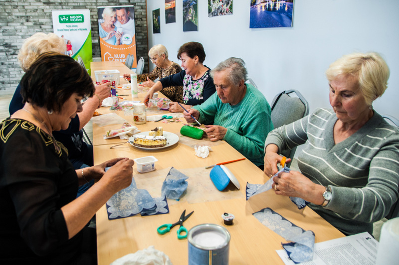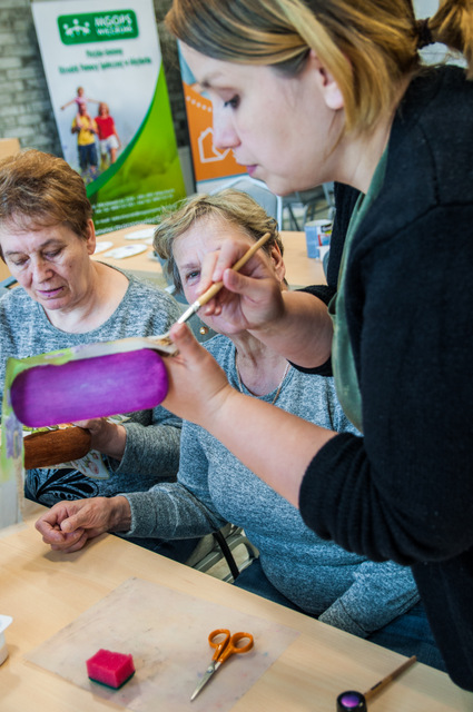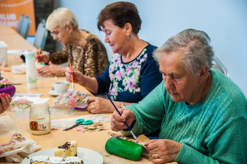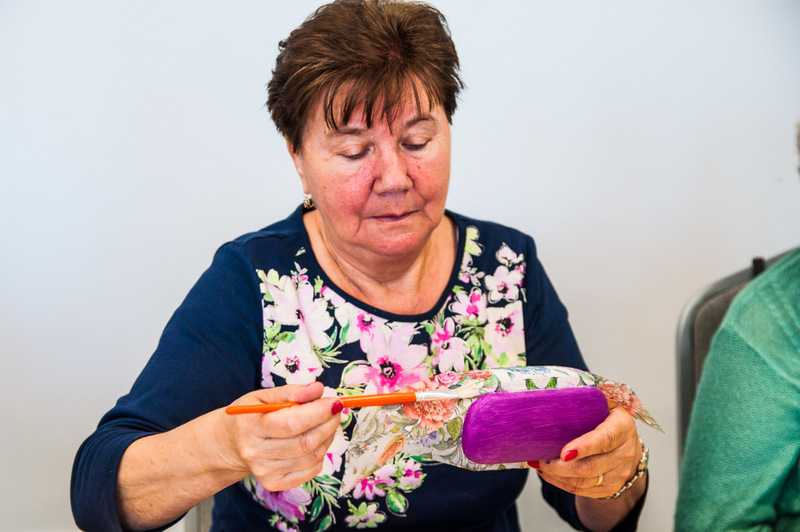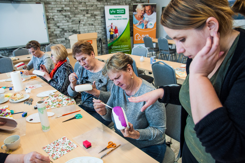 Pierwszymi zajęciami był warsztat rękodzieła artystycznego, poprowadzony przez Annę Cybulską. Seniorzy ozdabiali metodą dekupażową etui na okulary.