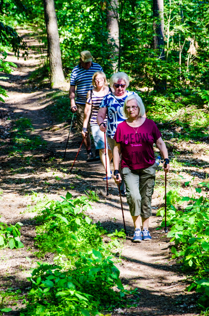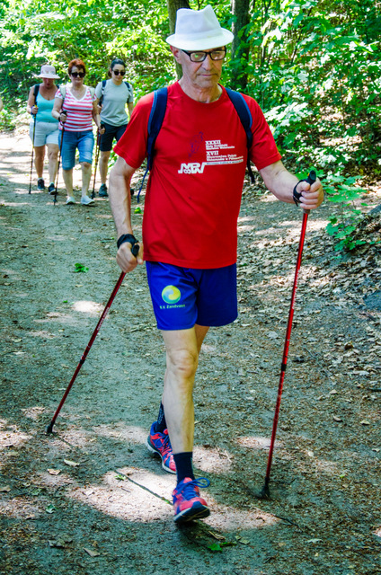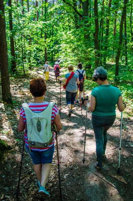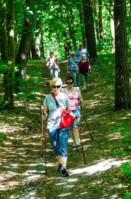 By uniknąć piekielnie gorących promieni słonecznych, uczestnicy zajęć spacerowali głównie w więcborskich lasach. Na czele licznej grupy, jak zwykle podążał blisko 90-letni pan Karol, który na spacery nordic walking uczęszcza od 7 lat.