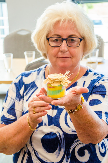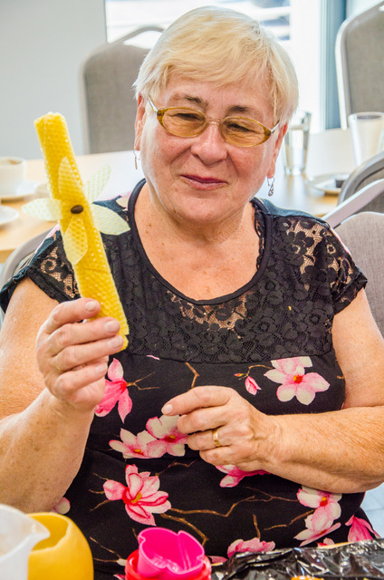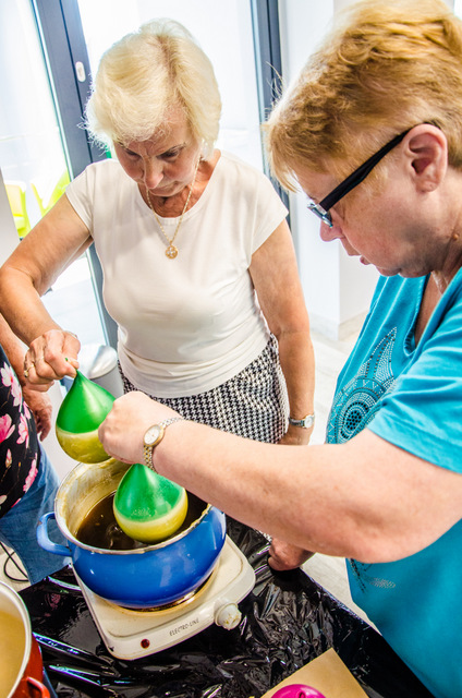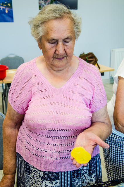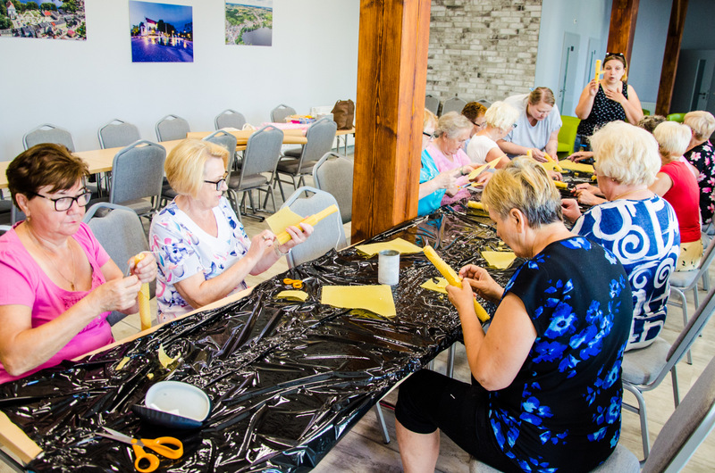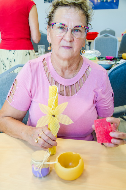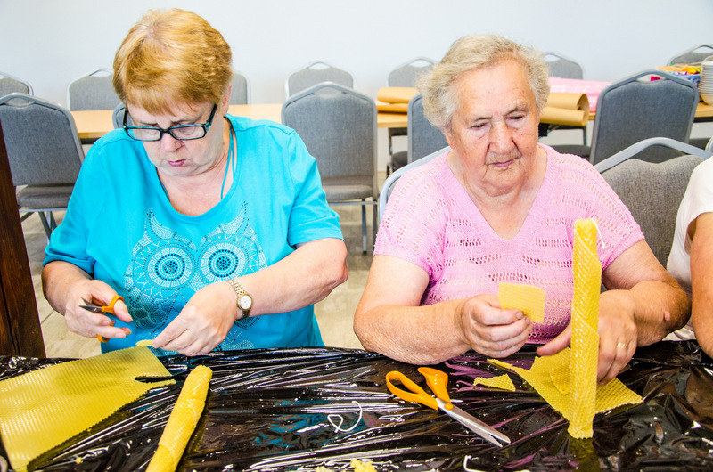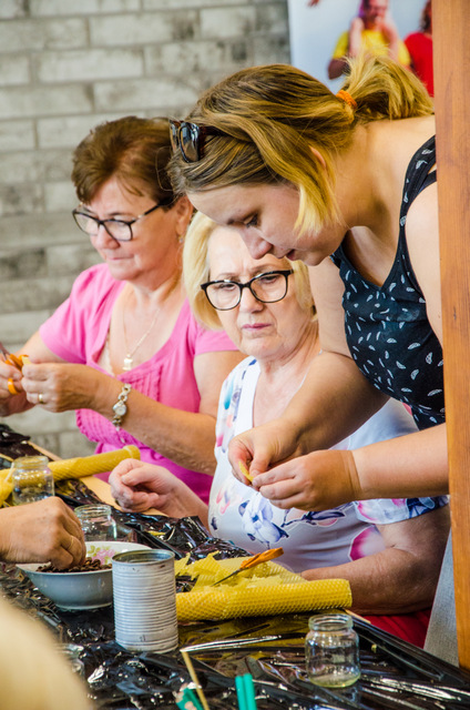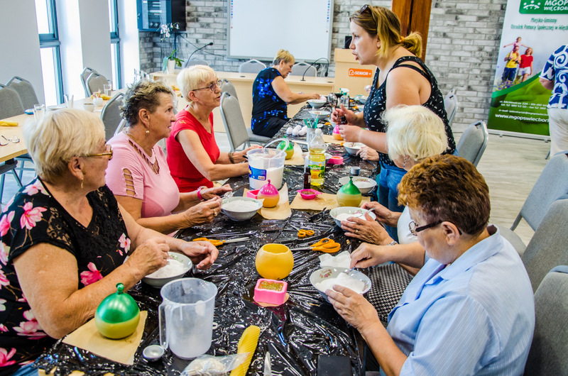 To był naprawdę intensywny warsztat rękodzieła artystycznego. Seniorzy w pocie czoła, pod czujnym okiem Anny Cybulskiej przygotowywali świeczki, mydła, kule zapachowe do kąpieli, peeling do ciała, a także lampiony woskowe.