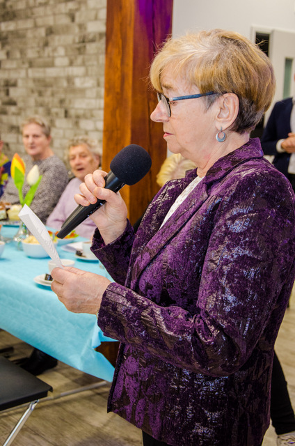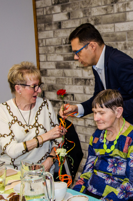 Spotkanie poprzedził miły akcent. Z racji zbliżającego się Dnia Kobiet, każda uczestniczka warsztatu otrzymała z rąk dyrektora MGOPS goździka. Ponadto Tomasz Siekierka, złożył seniorkom najlepsze życzenia z okazji ich święta. Następnie jedna z klubowiczek, Wiesława Migas zaprezentowała swój wiersz pt. “Nie tylko o kobietach”.