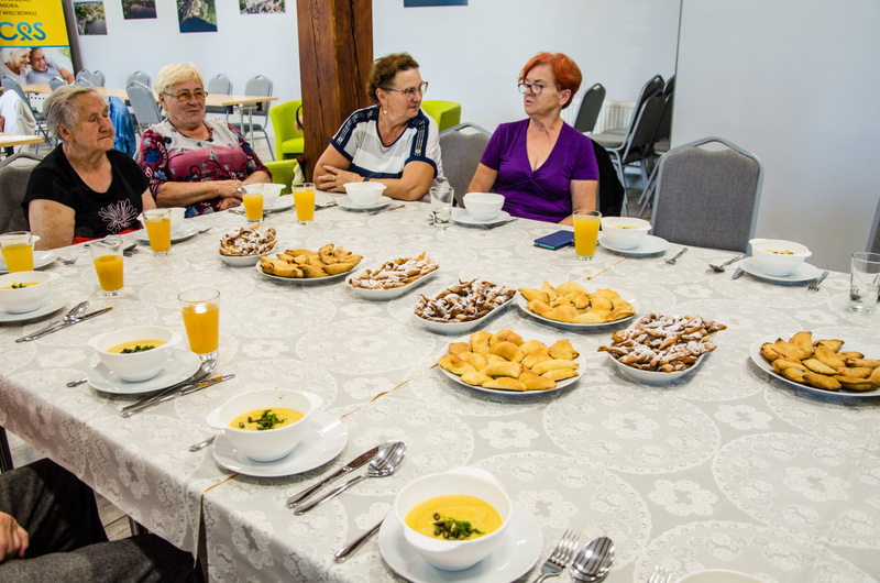 Kolejne zajęcia kulinarne w ramach projektu pn. “Centrum Aktywności Seniora”, dofinansowanego z Funduszy Europejskich za nami. Tym razem seniorzy przygotowywali pieczone pierogi z pieczarkami i szynką, krem z kalafiora i faworki.